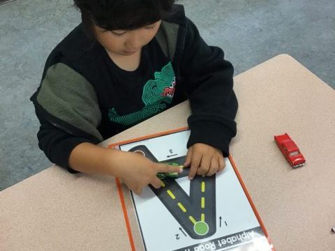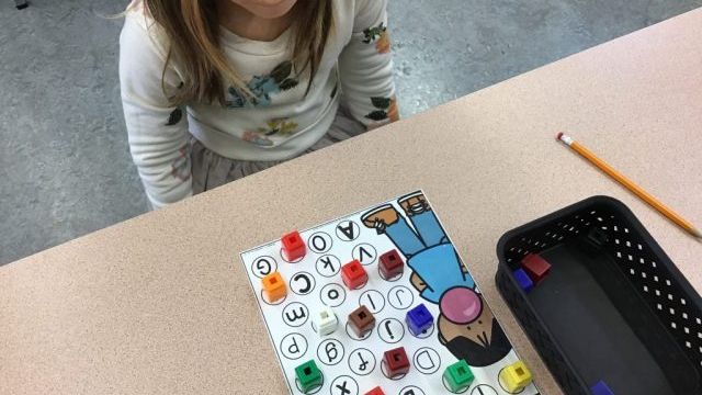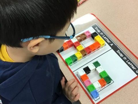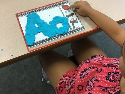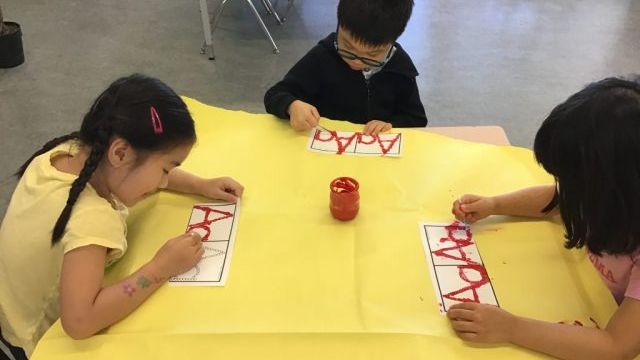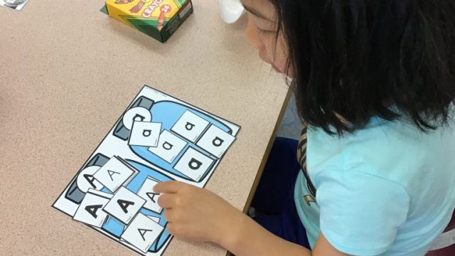 The children have been working on letter identification (e.g., in different fonts), letter formation, letter sounds and generating words that begin with a given letter. Here we are doing some activities for the letter ‘Aa’.