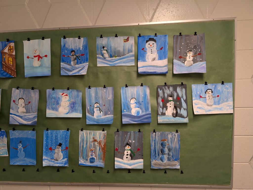 I have attached a couple photos of a painting we completed in class. We focused on shading and gradients of colour.