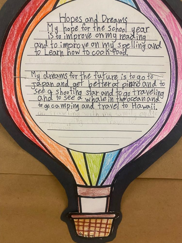 Inspired by Terry Fox’s dream, Div. 6 wrote about their hopes for the school year and dreams for the future!
