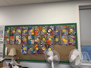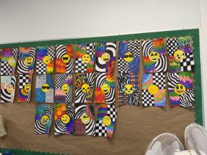 In art we made Emoji Art. We started by designing in pencils and then fine lined and coloured. In the middle, we put an emoji. We designed a face with things like the heart, eyes, and happy faces. We coloured the patterns in bright colours and in black and white. It reminded me of graphity murals. I loved the vibrant colours. They were very unique. Most of the class loved how you could make multiple designs. It was cool and so much fun.