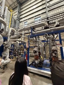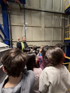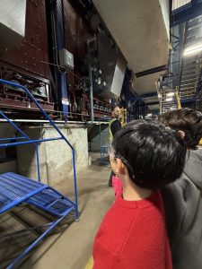 We learned about how they make heat energy from wood chips. They burn so clean they end up with 2% ash. They showed us a big bin of wood chips too grind it up. They had extra tanks of water in case they had to clean or fix the wood chip bin, the tanks of water heats up energy. It was really loud, hot and scary on the top when we were going down the stairs there were holes in them. It also felt anything could explode at any minute. We had to yellow lines for safety. If you touch a bin it is very hot and you will burn yourself, you’ll get a third degree burn.
