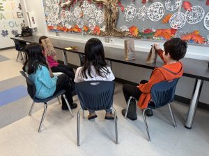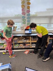 In library this term, we learned about digital literacy passwords and privacy. Another thing we did was picked books for our animal inquiry projects, Ms. MacLeod helped us find books that might help us in our AIP*(*animal inquiry project). A club stundents can join is comic club, where students who like comics make comics.
