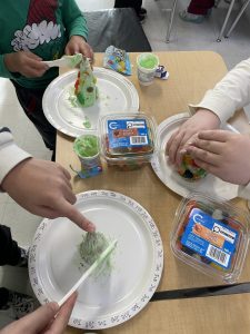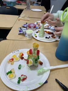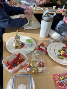 Buddies have been really fun! We have done a lot of things and here are some examples. One is Halloween. For Halloween we made board games and tiny play pieces for the board games. On halloween we did the parade with our little buddies. For winter break we went to the pancake breakfast, played “make a snow man,” and made kindness lights that tell you ways to be kind with our little buddies. Throughout the term when we had nothing else to do we would read or draw with them. Last but not least we made Christmas trees out of icing ice cream cones and lots of candy! We have not changed buddies so we get to know them well over the year.