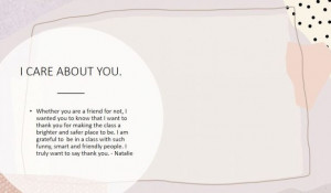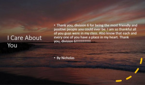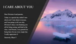 Since the grade 7’s wrote their speeches in January and we are now in May, students were given this instead: The lesson I learned in 2020/21 was… This is to be a minimum 3 minute and a maximum 5 minute speech. They will be timed.