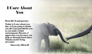 We have had another great week! Our Kindness Projects are coming along well! Please ask your child what they are working on to invite conversation at home.