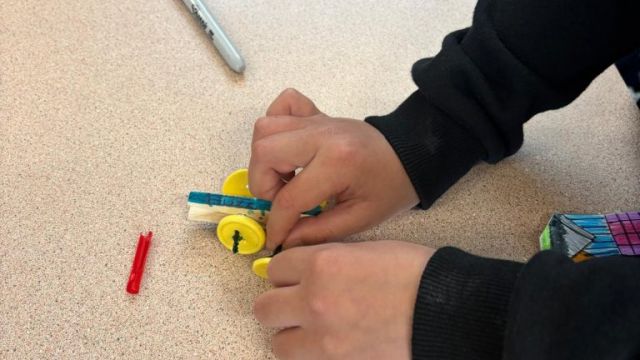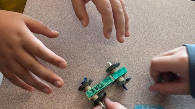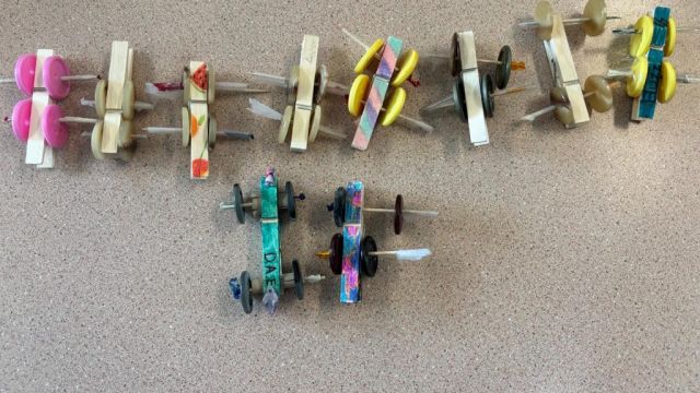 Division 7 has been exploring Simple Machines in Science and learning about Wheel and Axle. Students worked collaboratively in groups to design and build their own toy cars using clothes pins, buttons and toothpicks. After creating their models, students tested how well their cars rolled and observed how the wheel‑and‑axle functions in motion. They used a variety of materials around the classroom to build ramps to compare how their cars performed on different surfaces. It was an engaging and fun learning experience for the class.