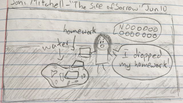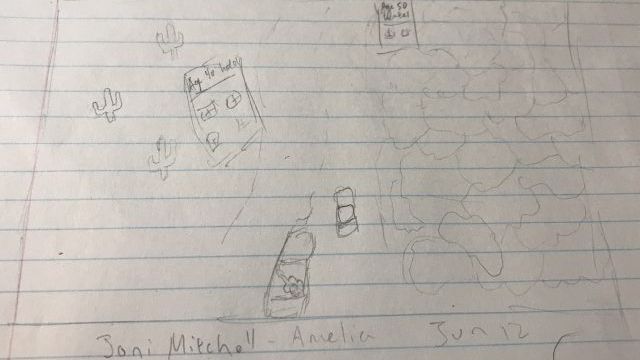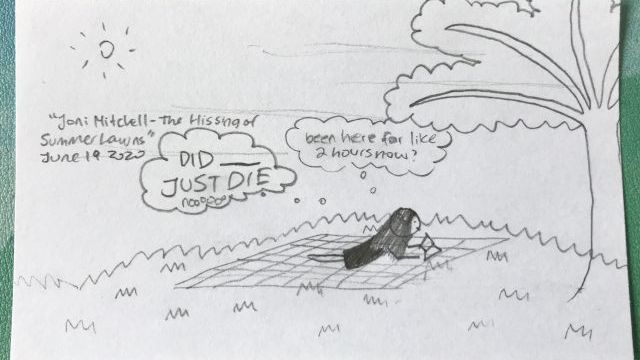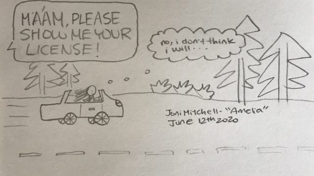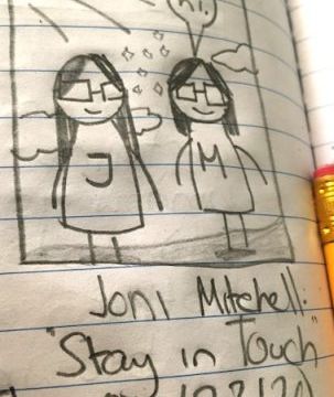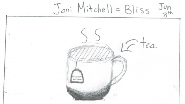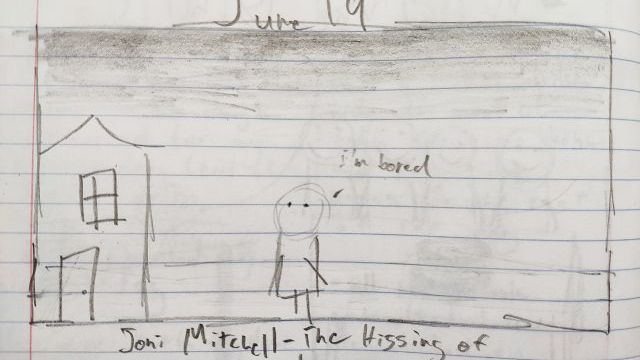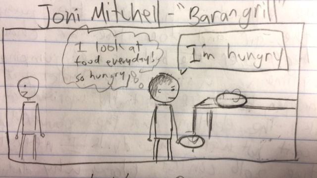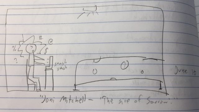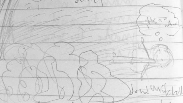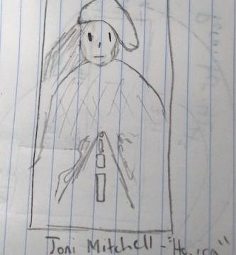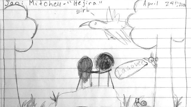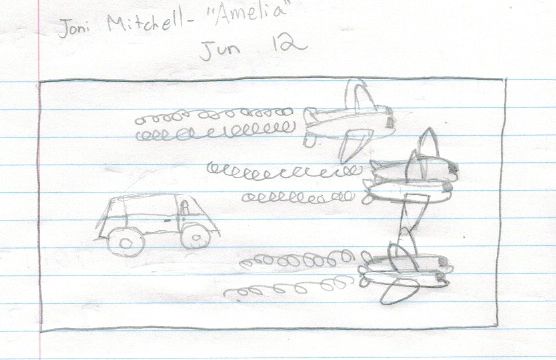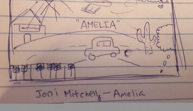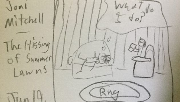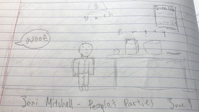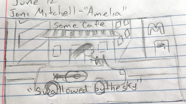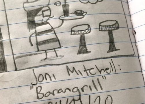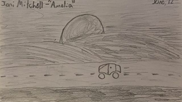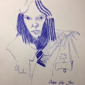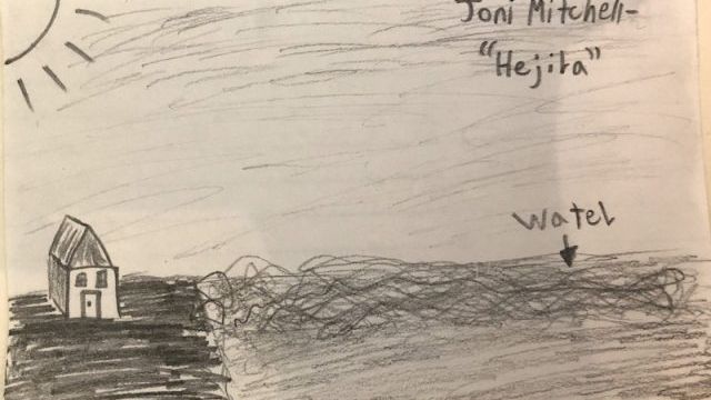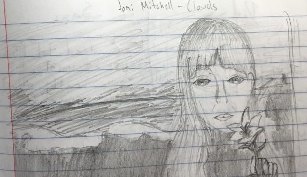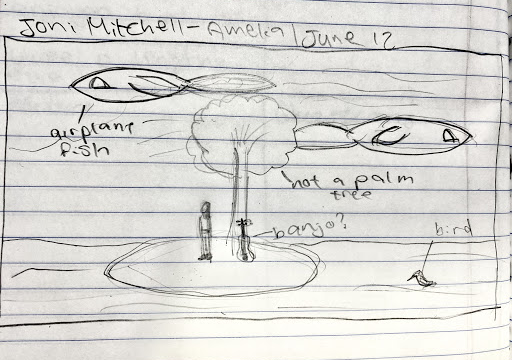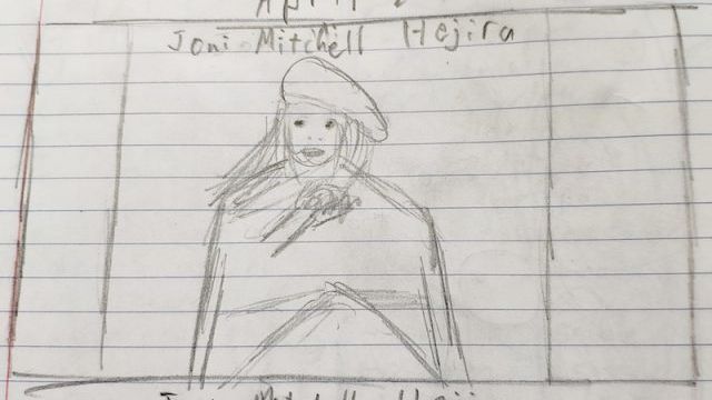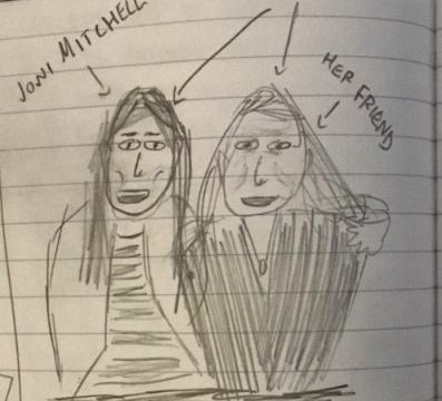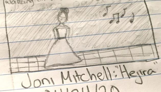 Your job is to listen to the title track from Joni’s ground-breaking 1976 album Hejira and to draw what you hear.