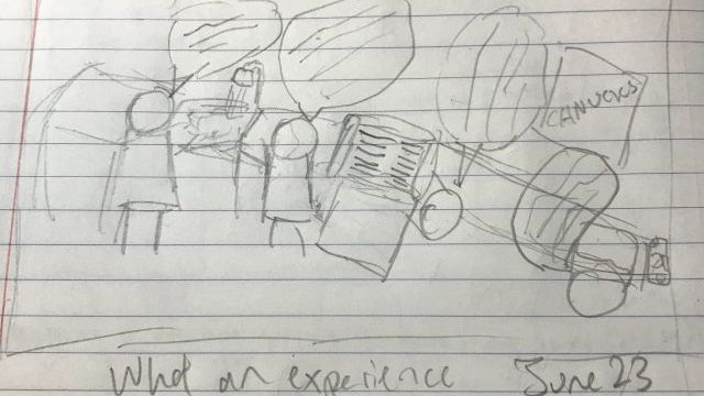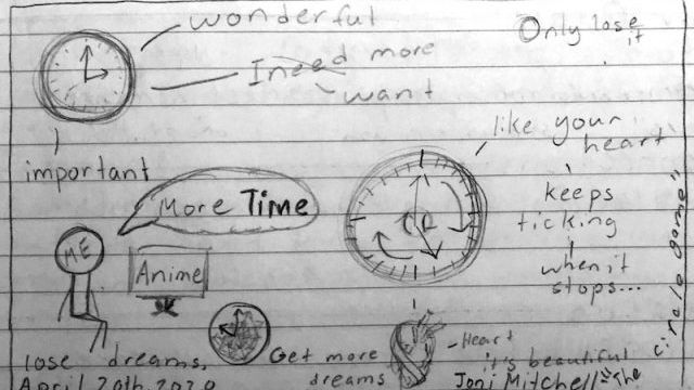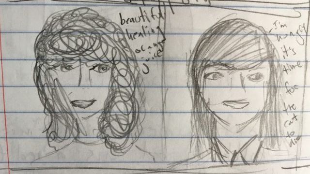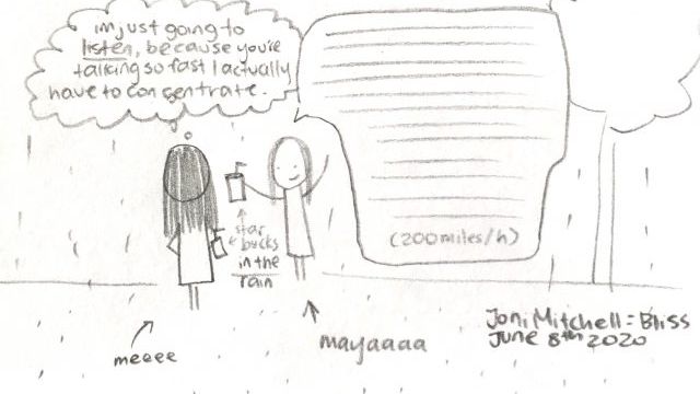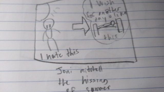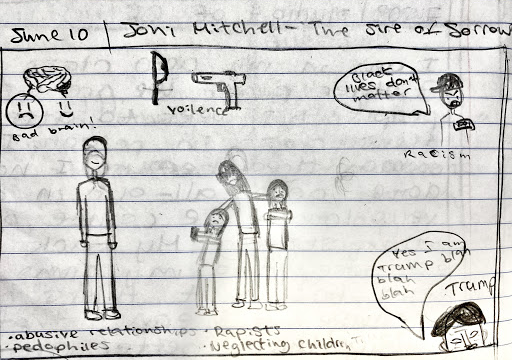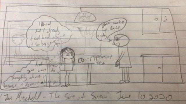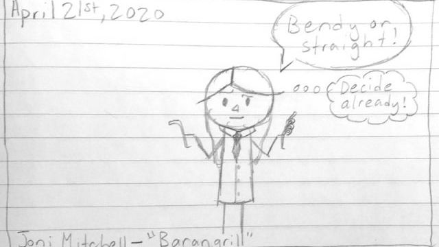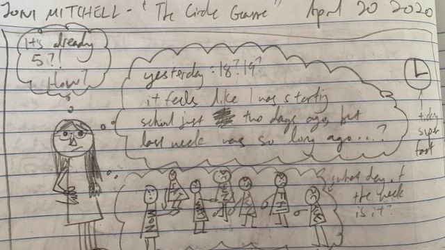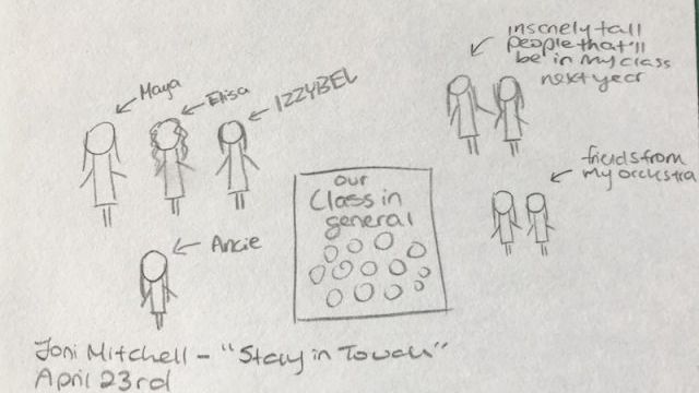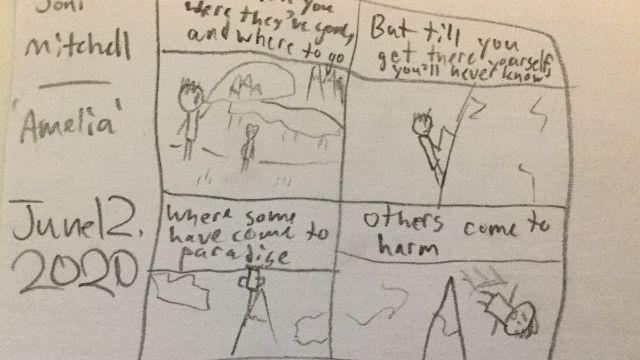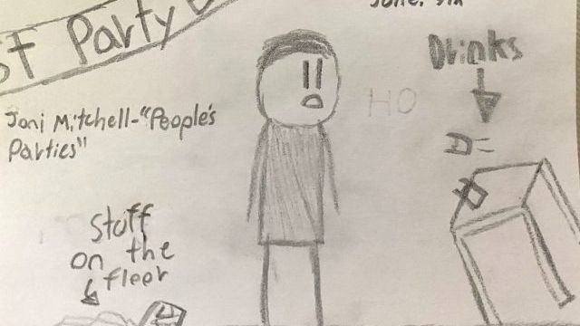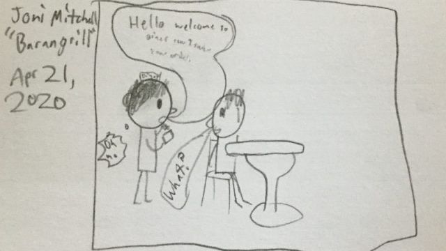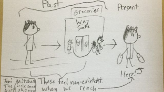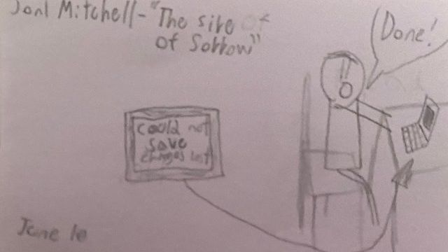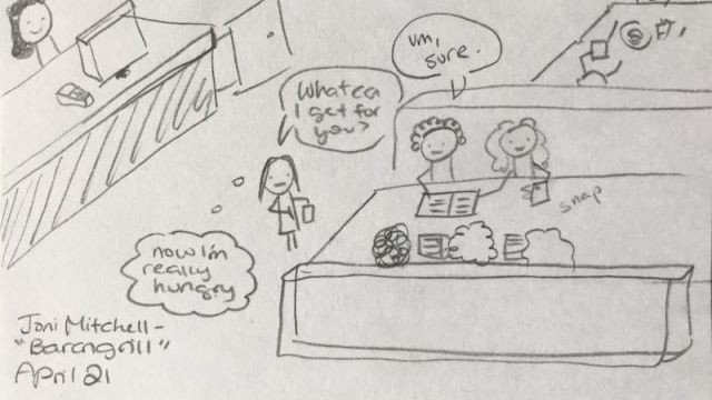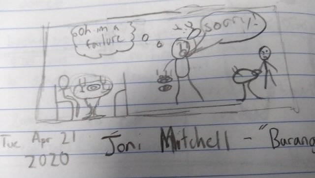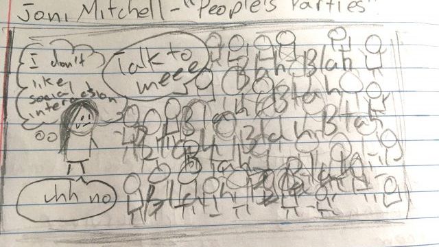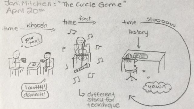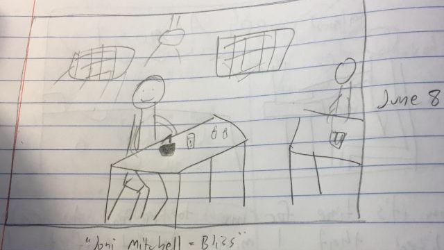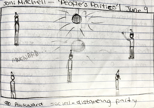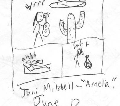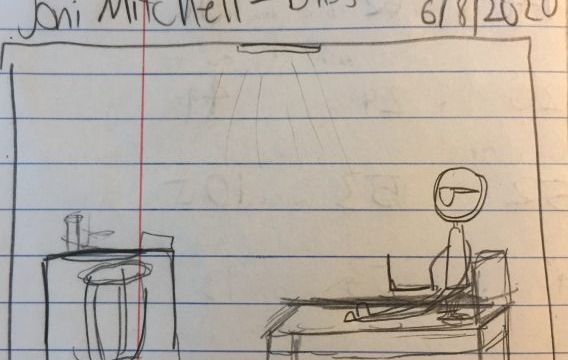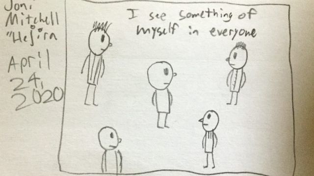 Your job is to listen to the title track from Joni’s ground-breaking 1976 album Hejira and to draw what you hear.