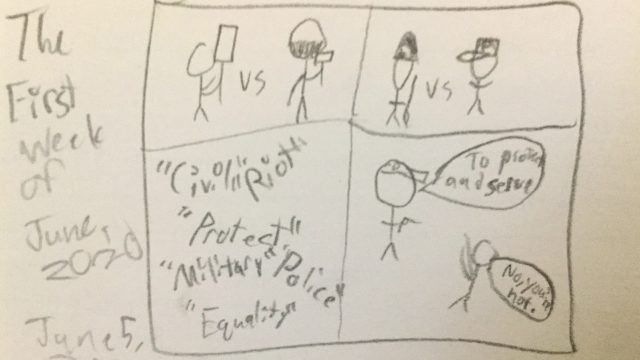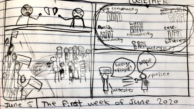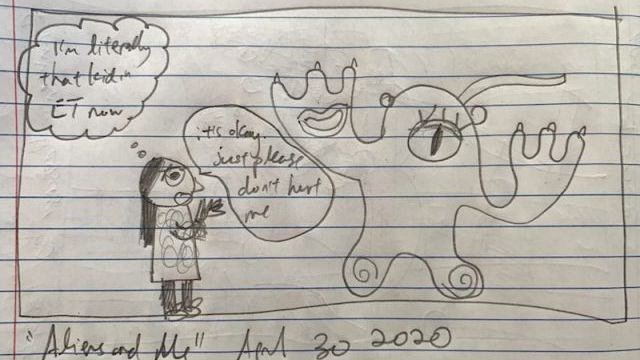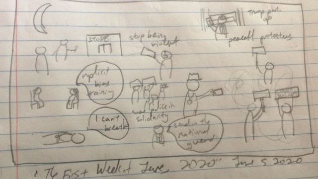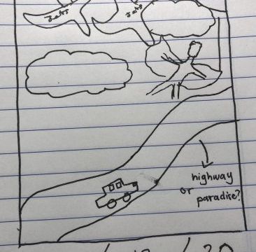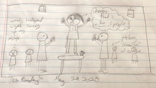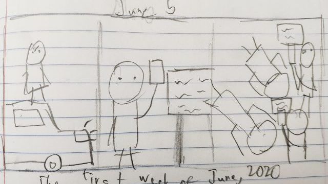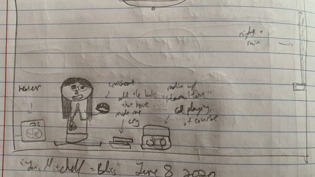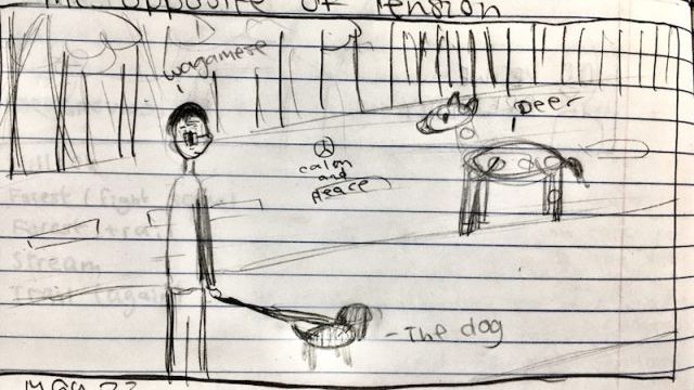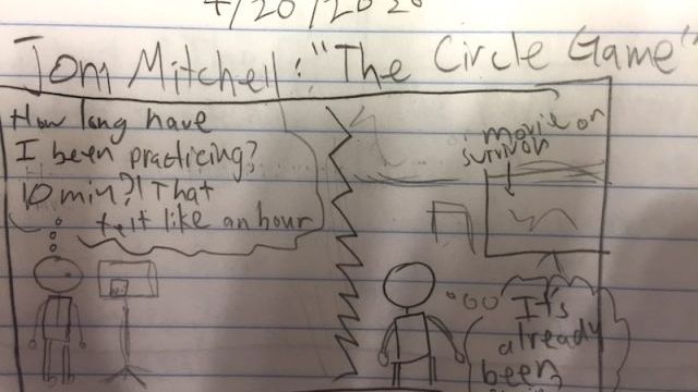 Here’s a selection of Index Card Drawings done during this time of emergency distance learning – in each instance you’ll see the prompt, the music the index card was drawn to, and then the results: