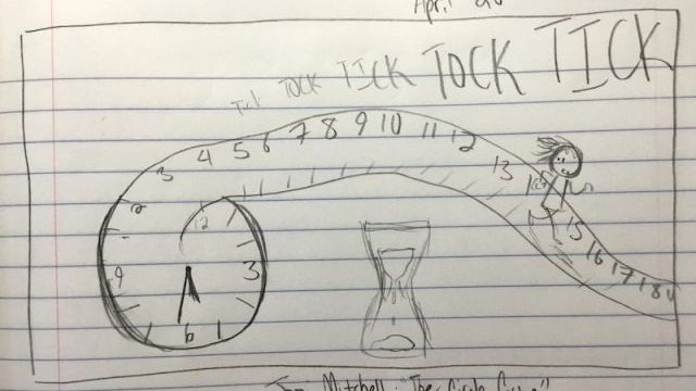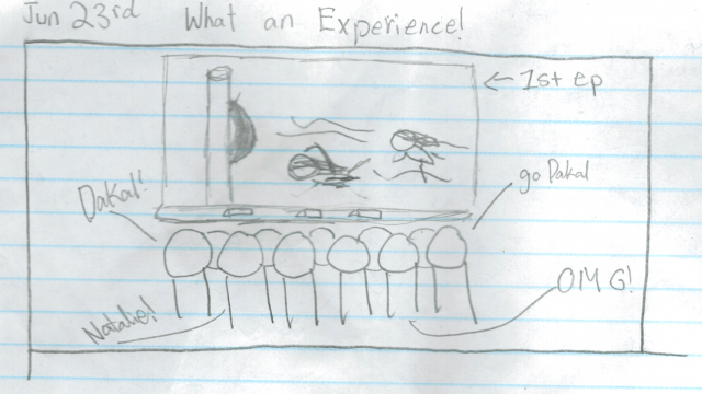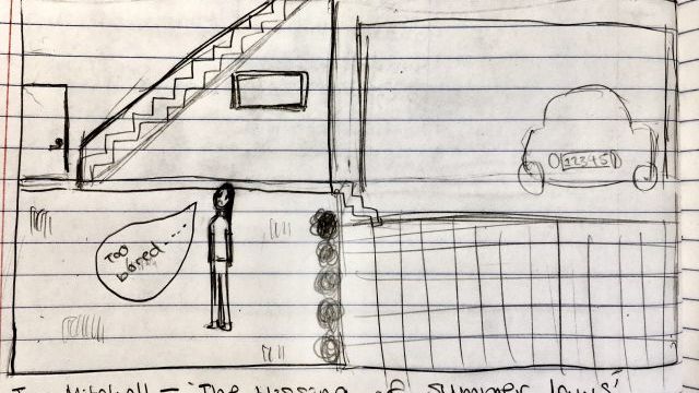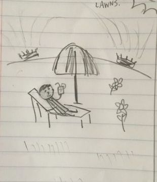 You know those summer days that are really hot and the sky is cloudless and blue, and all the sprinklers are out, and all your friends are either busy or away, and the day seems to stretch on forever and you’re super bored but as soon it’s over you want another one just like it? Draw that.