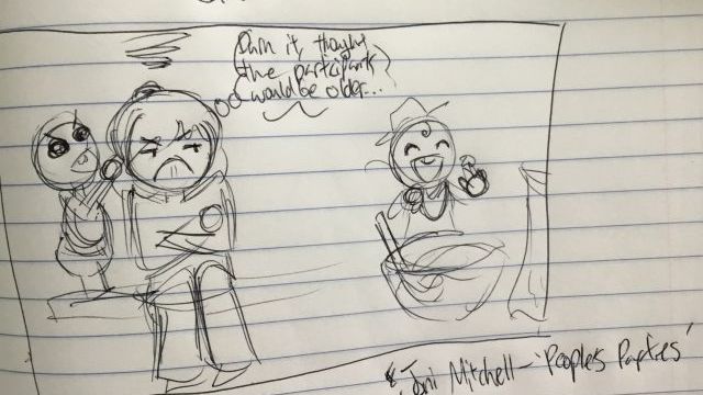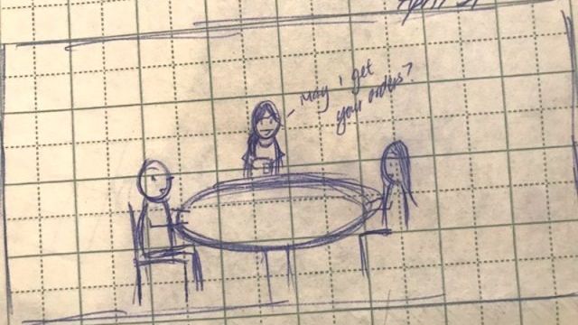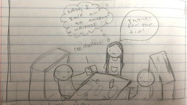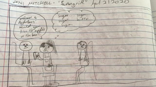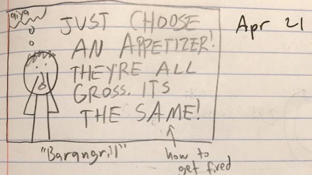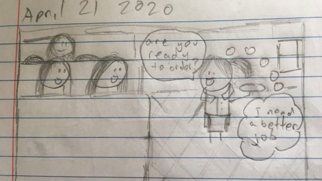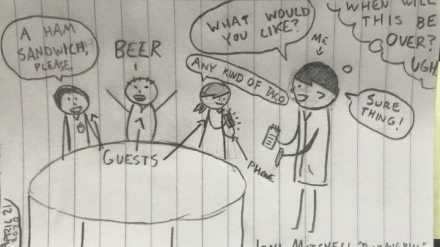 Draw yourself, Ivan Brunetti-style, as a waitress in a diner.
