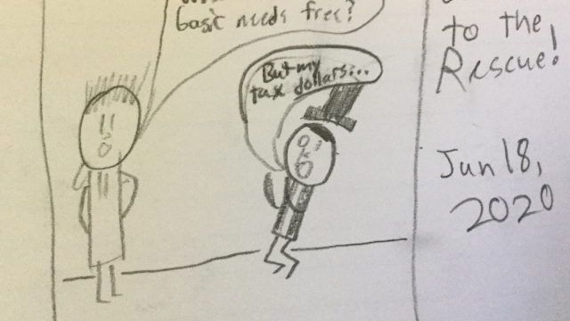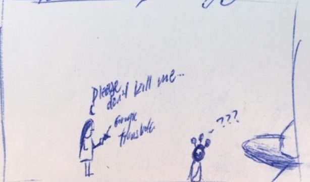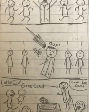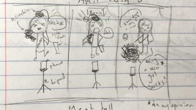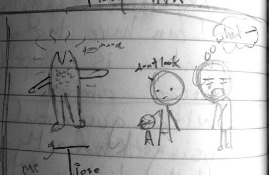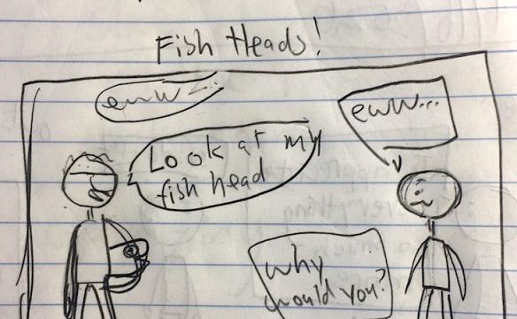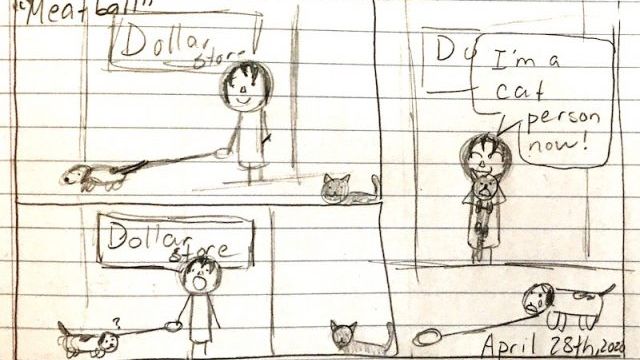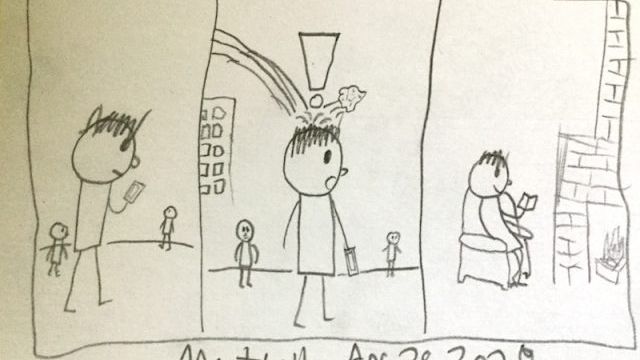 In the spirit of R. Crumb’s famous “Meatball” series in Zap, draw three panels: