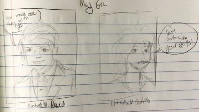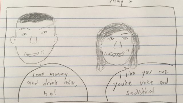 Draw you, Ivan Brunetti-style, telling your The Black Cauldron partner(s), also drawn in Ivan Brunetti-style, something you appreciate about them (for reals).
