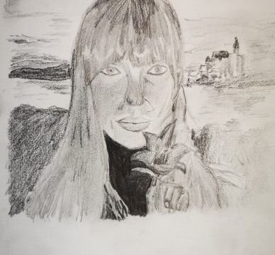 Choose a Joni Mitchell painting that calls to you. Copy that image with as much precision and detail as you can.