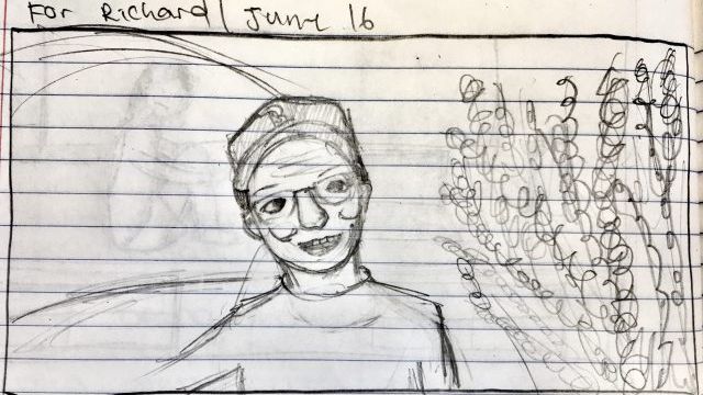 Copy this photograph of Richard Wagamese with as much precision and detail as you can muster – keeping in mind Lynda Barry’s incredible advice about images being like maps: a collection of lines with spatial relationships – while you listen to the music he said changed his life: Rostropovich playing the Dvořák Cello Concerto.