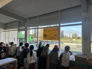 Supporting and Cheering on the Construction workers! One of our students came up with the idea to create a thank you sign that we could hang in the window, letting the construction crew outside know that we appreciate them and all of the hard work they are doing to make our school bigger and better! Caring for our Community!