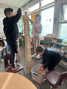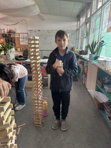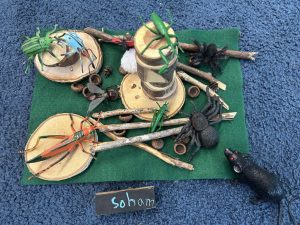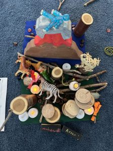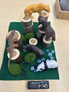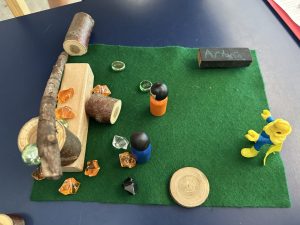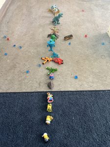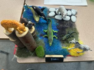 Story Workshop– as part of our story writing learning, one of the ways to develop creativity and imagination is to build a snapshot from a story. This helps boost the story-telling process! Students can choose loose materials provided and set them up in a desired arrangement. This then helps the student to show their story before they sit down to write the story. Ms. Helfrich takes a photo of their creation and that is added to the top of the writing paper for their story. This photo can be the beginning of their story, the middle, the problem, the solution or even the ending of their story. The students are learning to create an entire story around their one creation and not just write a few sentences describing what they have created.