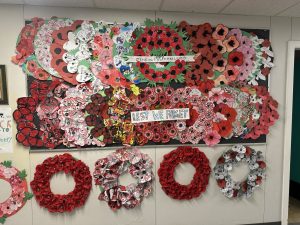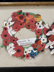 Remembrance Day– Our school took some time to learn about, reflect upon and share about why and how we remember those who have fought hard to allow Canada to be a safe country. Our class shared what Peace feels like, smells like, tastes like, sounds like and what peace is. I was unable to get a photo of the class sharing in front of the primary classes, but here is a photo of the wreath the class made to honour our soldiers.