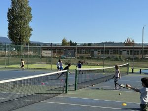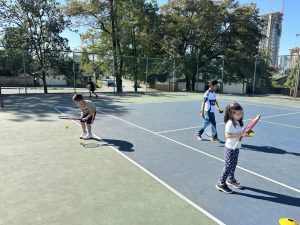 TENNIS– The students learned tennis skills in our recent tennis lessons. Students have learned simple games to develop the skills needed to play tennis and have experienced small court games to practice serving a ball over the net and returning the pass back over the net (a rally). Ask your child to show you what they have learned!