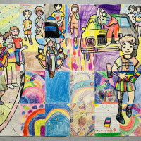 This month we learned about Vincent Van Gogh’s style of painting that focuses on the use of vibrant colours to express emotion and thick lines to add texture, depth and movement. The students used pastels to create flowing lines that resemble swirling clouds in the sky. They then enhanced their artwork with watercolour paint and glittering stars to complete their Starry Night scenes.