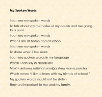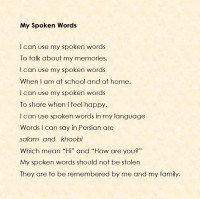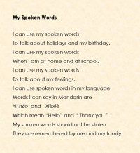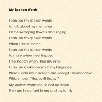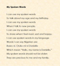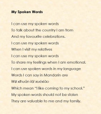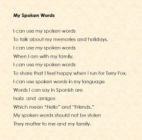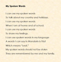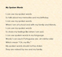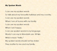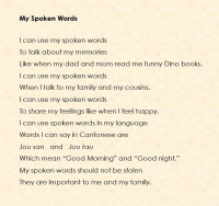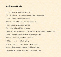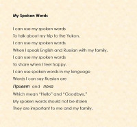 In preparation for Orange Shirt Day, our class read Stolen Words by Melanie Florence, a story about a young girl who helps her grandfather reclaim Cree words he was forbidden to use during his time at residential school. We also explored how language plays a vital role in shaping identity and culture. Using a given template, students wrote their own poem that included personal reflections and words from their home language.