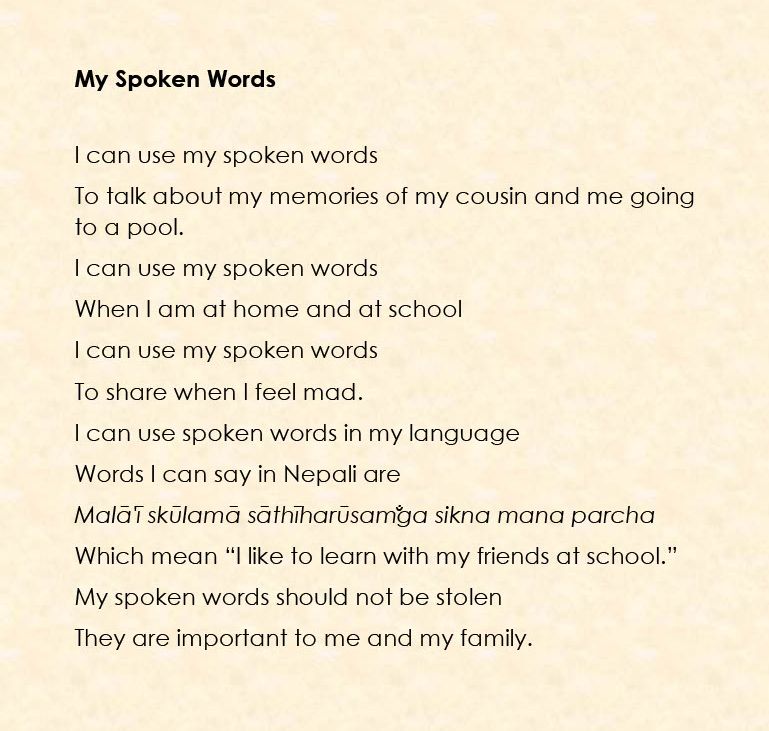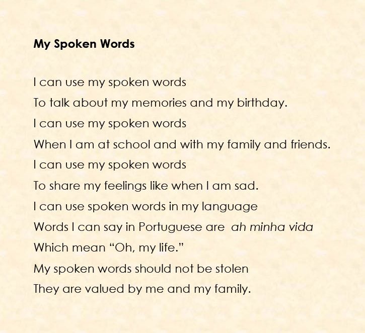 In preparation for Orange Shirt Day, our class read Stolen Words by Melanie Florence, a story about a young girl who helps her grandfather reclaim Cree words he was forbidden to use during his time at residential school. We also explored how language plays a vital role in shaping identity and culture. Using a given template, students wrote their own poem that included personal reflections and words from their home language.