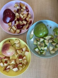 We have been spending the past week learning about apples and their different parts. Some other fun activities we did with apples were apple stamping and having an apple taste test! Our class favourite apple was the red gala!