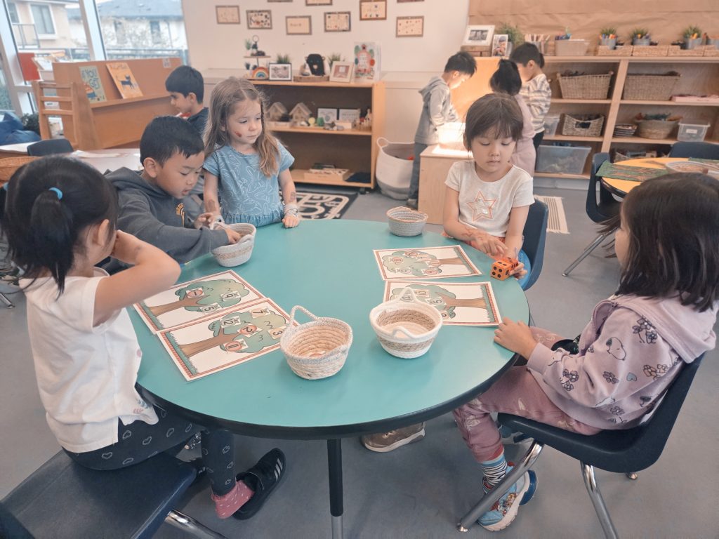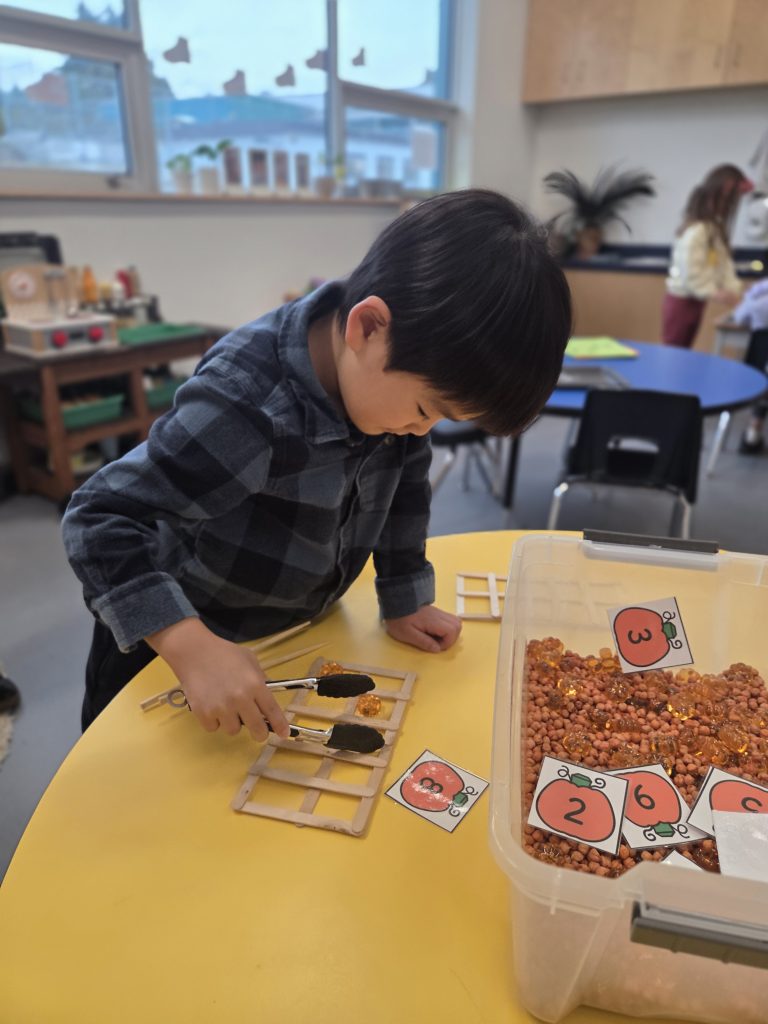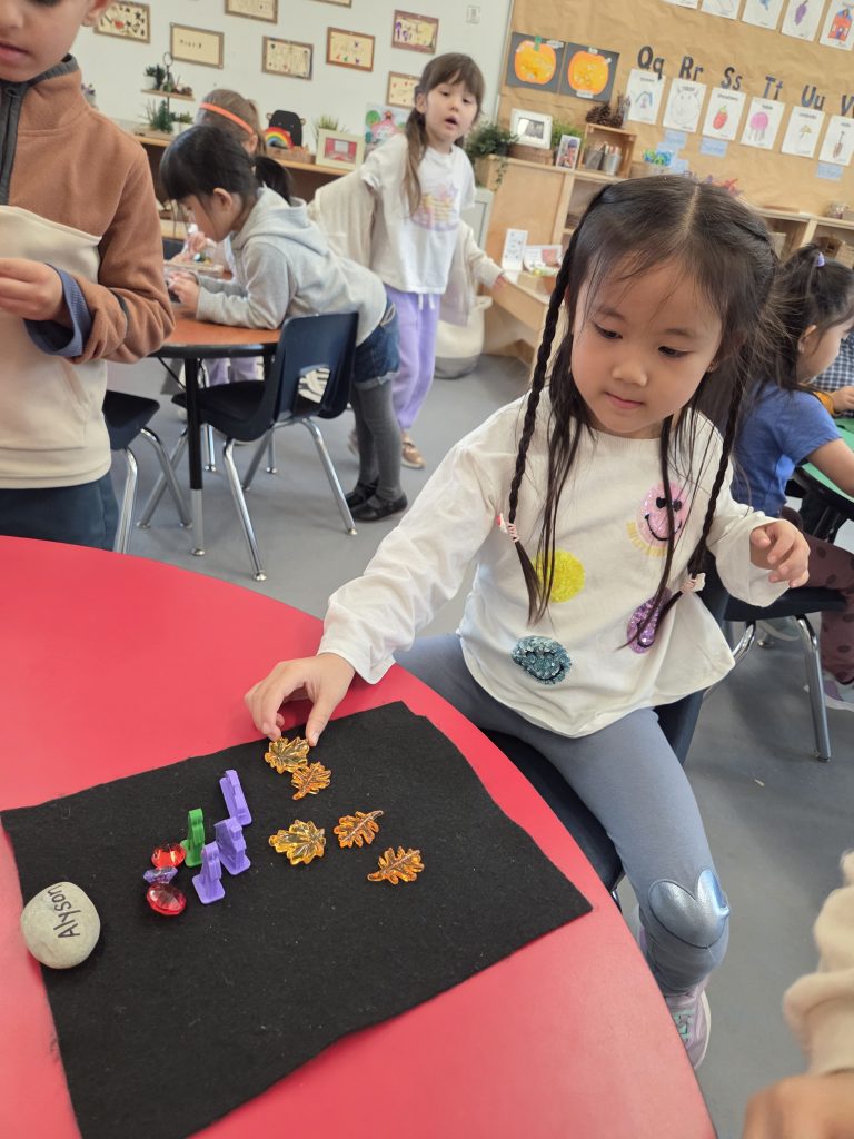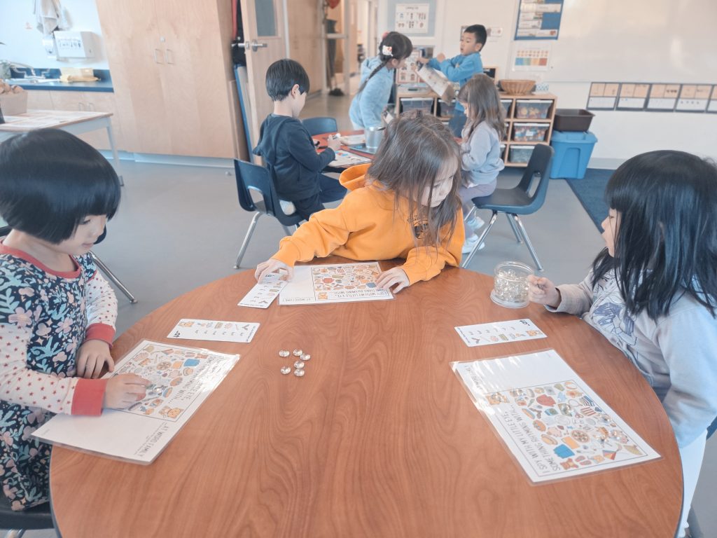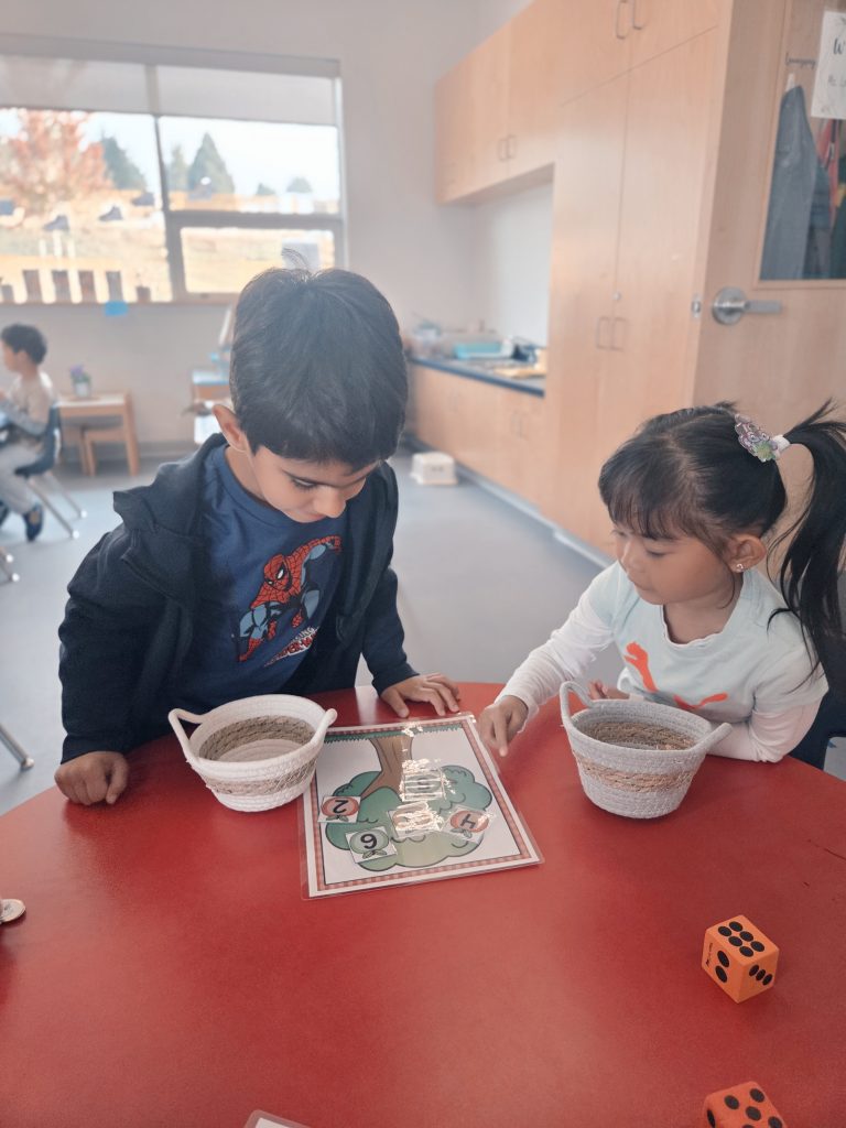 In math we focused on naming, sorting, and finding shapes in our classroom and around the school. We also learned a brand‑new math game called “First to 10!” The students practiced counting, taking turns, and using good sportsmanship.