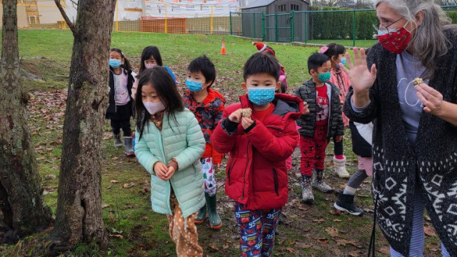 Last week our class made some treats for the birds in our Parkcrest park. Ms. Paul brought in suet mixed with seed mix and we covered our pinecones with the mixture. We then went outside and hid the bird treats around our park for the birds to find!