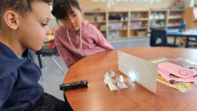 Division 11 have been learning about light and sound. We learned what makes light and how sounds are made. The kids all demonstrated a sense of wonder as we explored with different materials and activities!