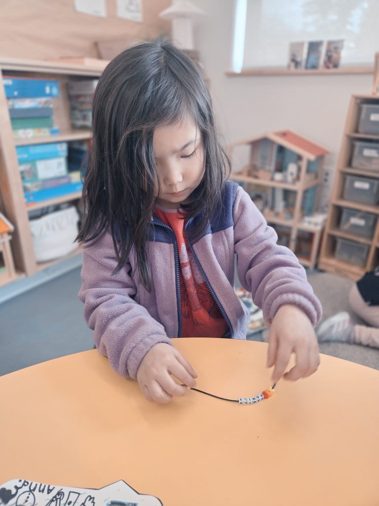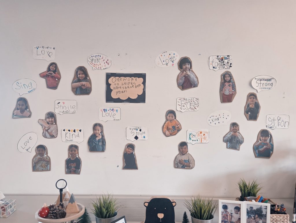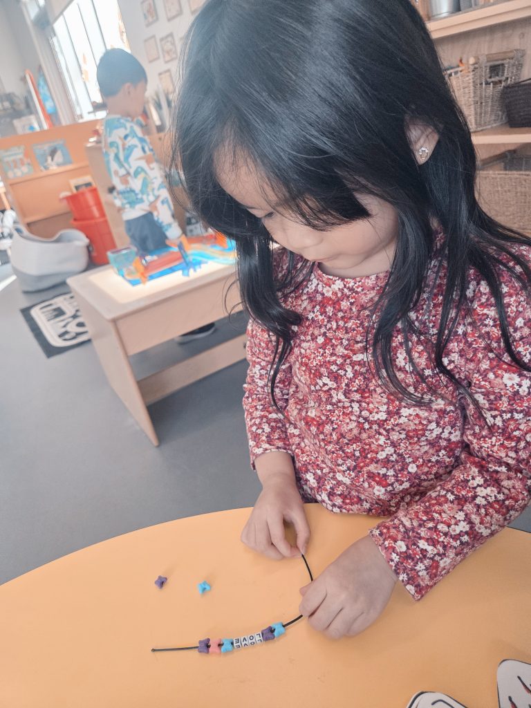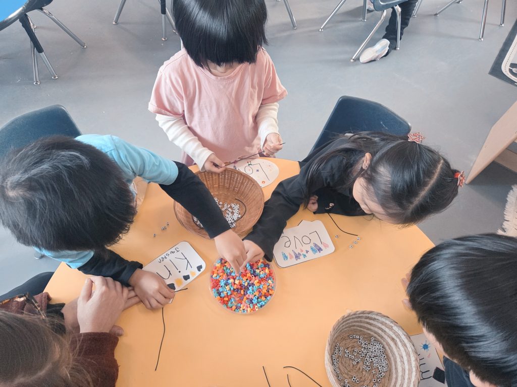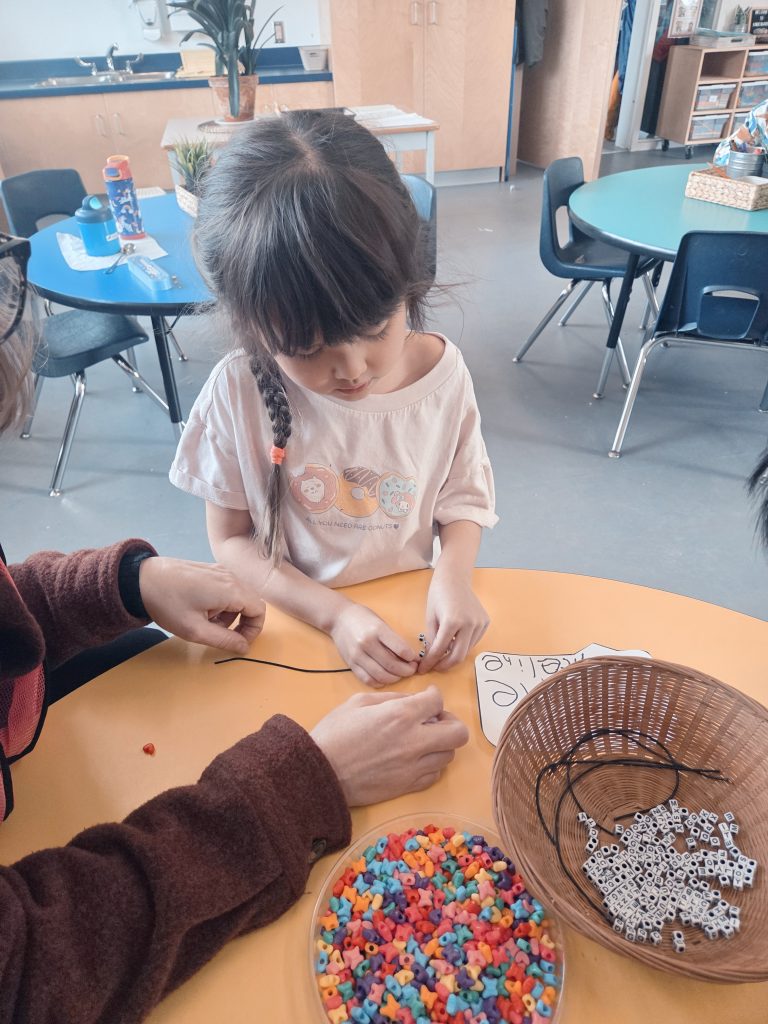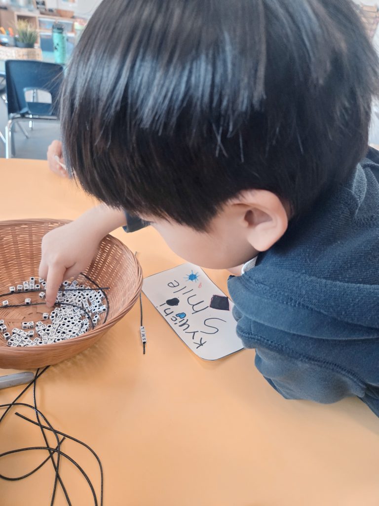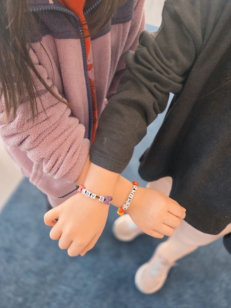 We read the book One Word for Kids, which inspired us to think about a word that will help us be our best selves this year. We brainstormed words like kind, strong, fast, love, smile, sing, family. Each child chose a word that was meaningful to them, wrote it down, and created a bracelet to wear as a reminder.