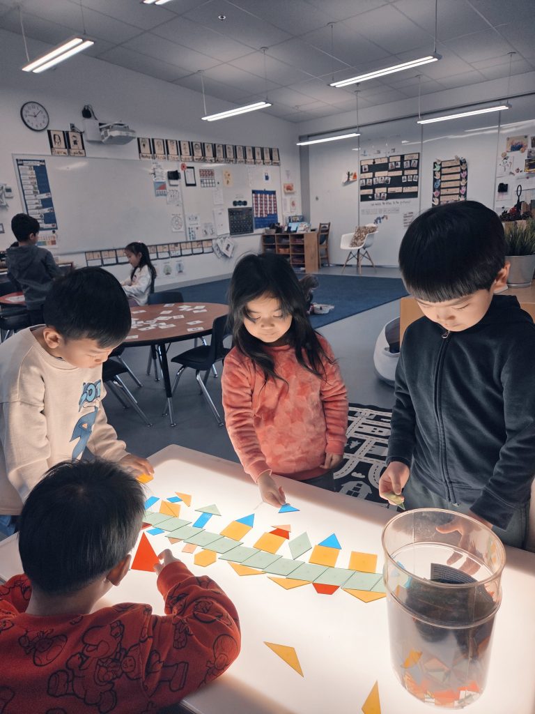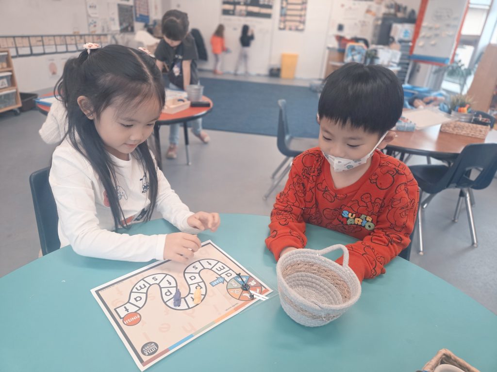 In math we focused on naming, sorting, and finding shapes in our classroom and around the school. We also learned a brand‑new math game called “First to 10!” The students practiced counting, taking turns, and using good sportsmanship.