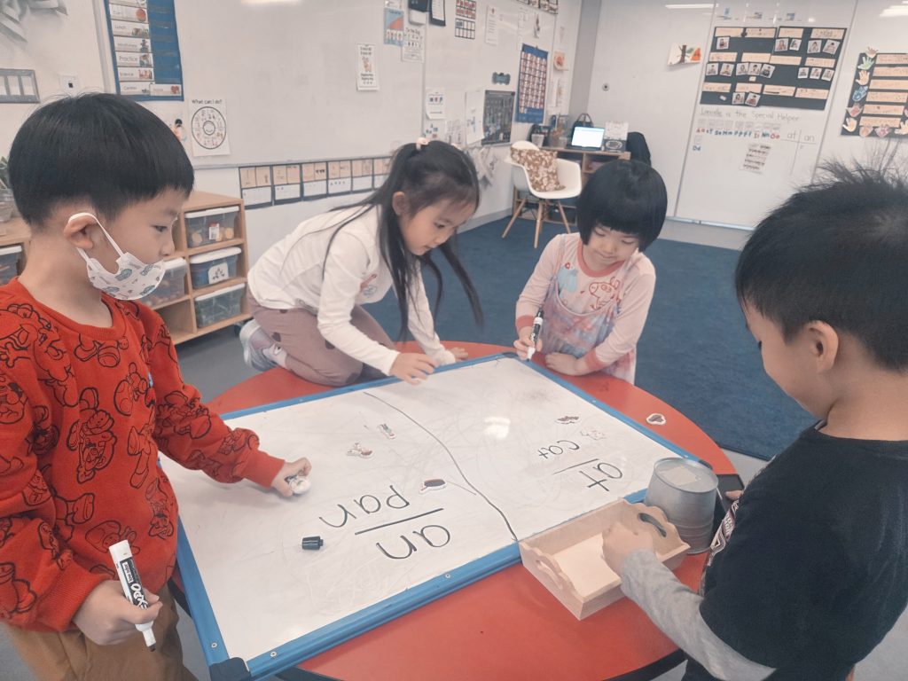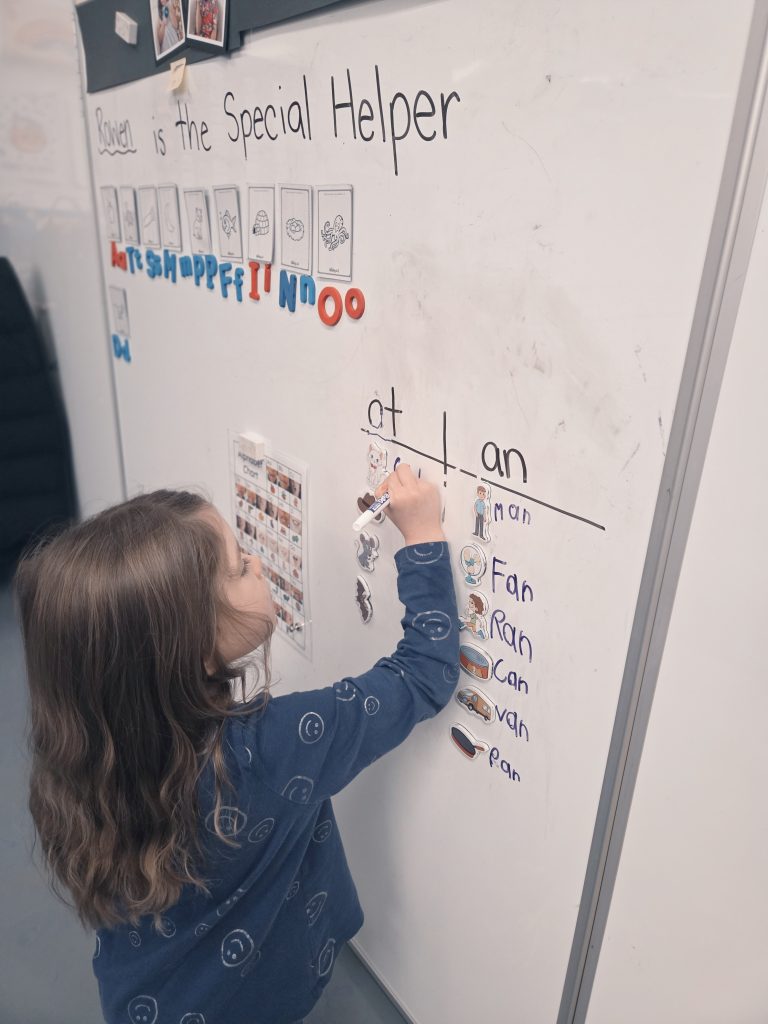 In literacy, we continued strengthening our understanding of letters and sounds. We continued working with CVC (consonant‑vowel‑consonant) words, learning how to tap and blend sounds to read simple words. The students are becoming confident little readers—it’s exciting to see their skills grow!