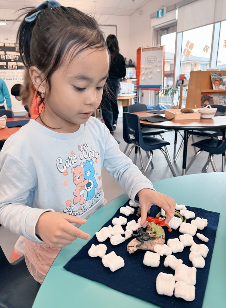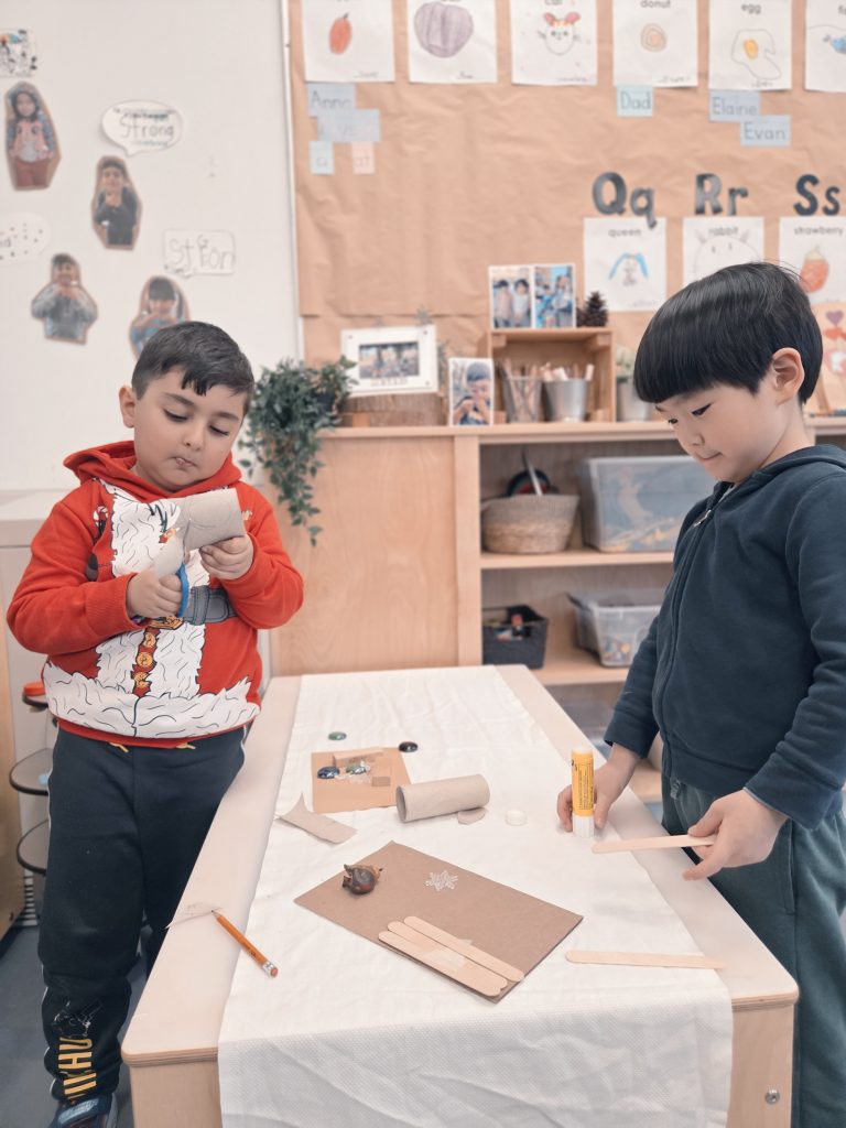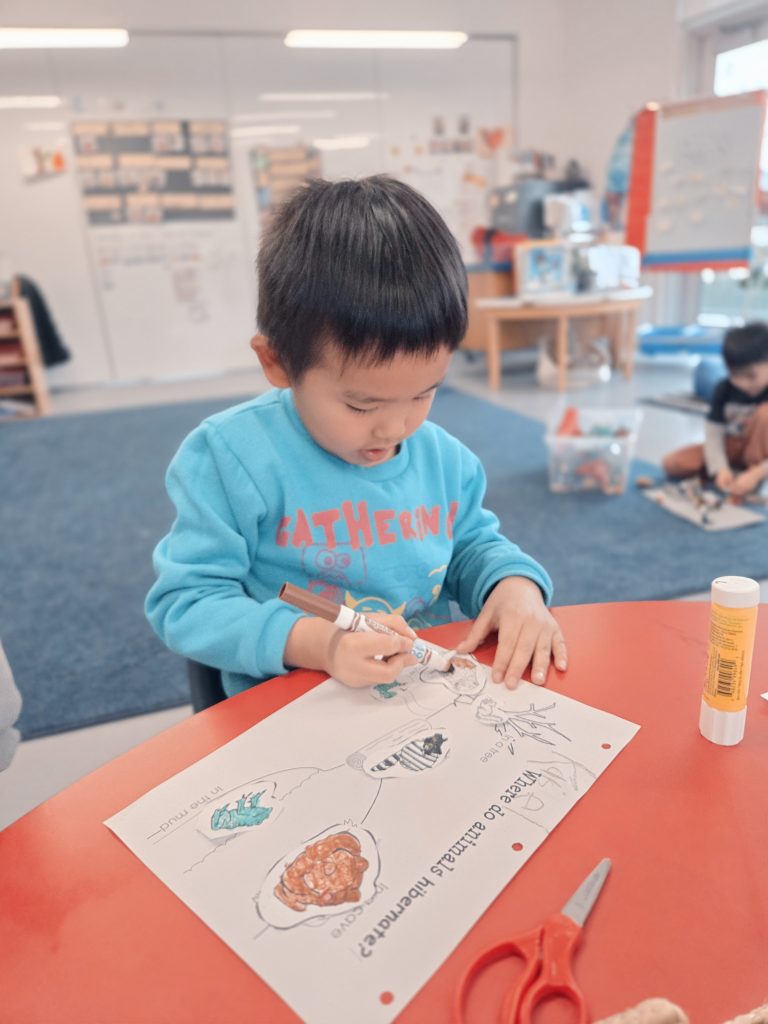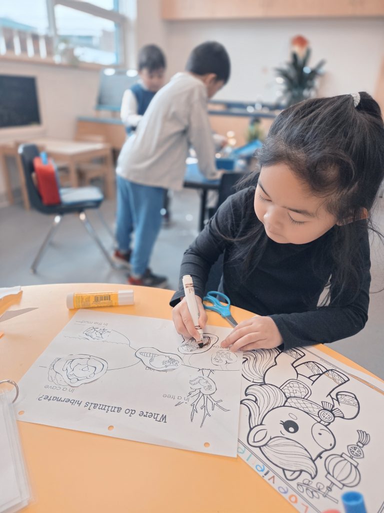 We are discovering how different animals hibernate, migrate, or adapt to the cold season. The children loved learning fun facts and sharing their own wonderings!