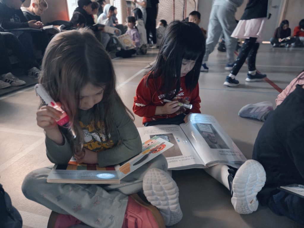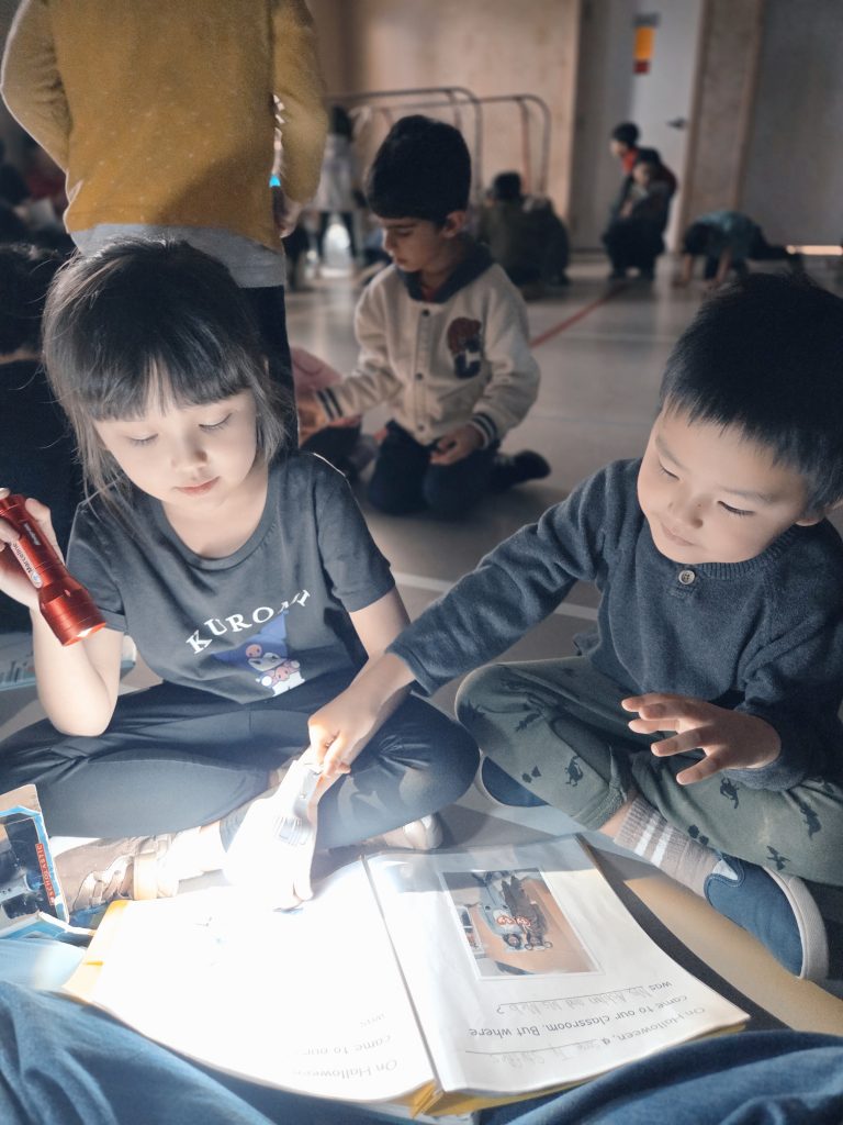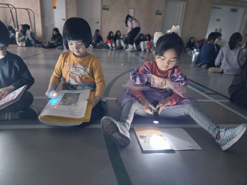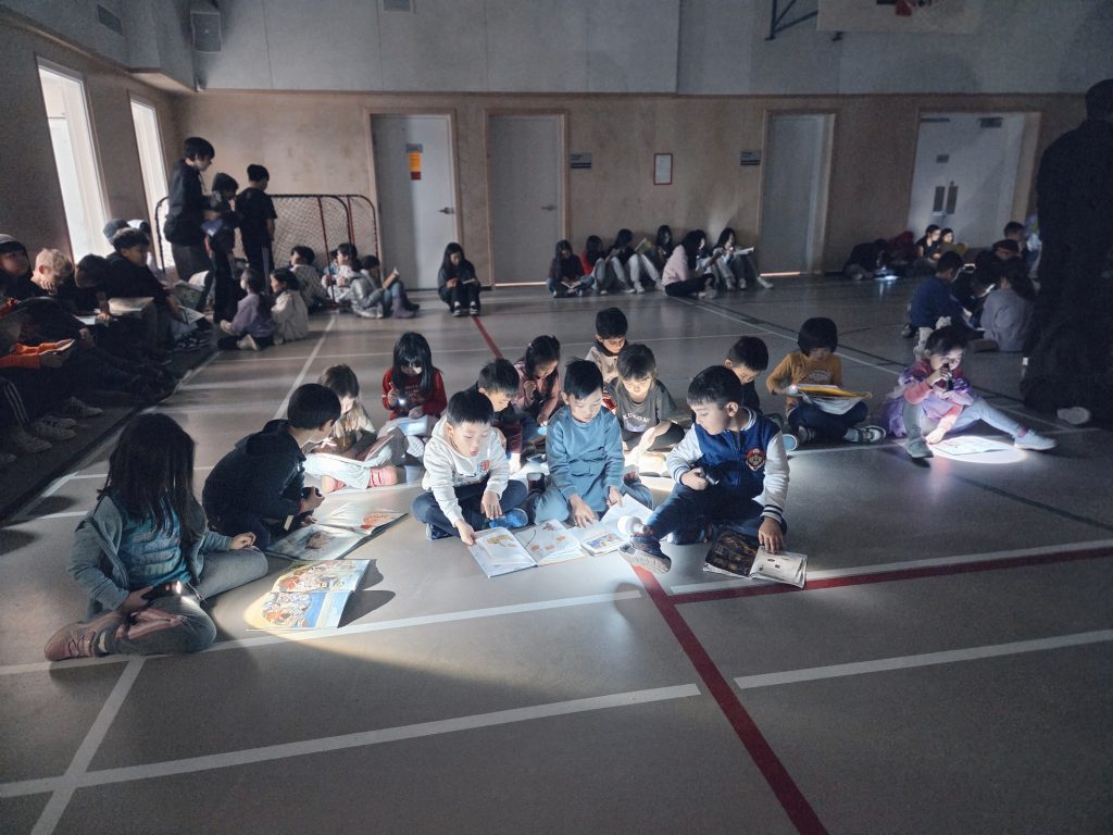 This month we also celebrated Literacy Day with our school community. We attended a fun and energetic assembly, where each child brought a knowledge card to the gym. They had a special moment to share the fact on their card with a friend sitting nearby. Our class focused on animals that hibernate in the winter. After lunch, we had a lot of fun reading in the dark. It was a huge hit!