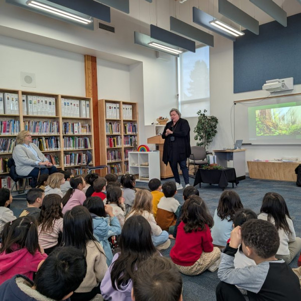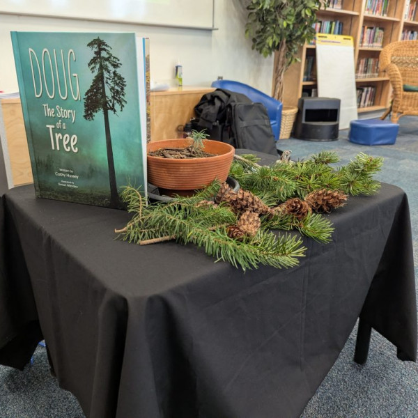 At the end of January, our school had a special visit from local British Columbia author and educator, Cathy Hussey. She brought her passion for storytelling and the natural world directly to our readers. Cathy’s work often reflects her deep connection to the Pacific Northwest and her background in working with young learners. Her book, Doug: The Story of a Tree, is a heartwarming tale designed for children (ages 6–8) that explores themes of growth, resilience, and the interconnectedness of nature.
