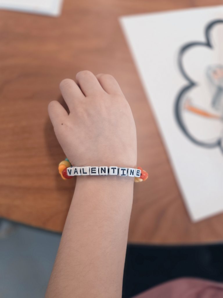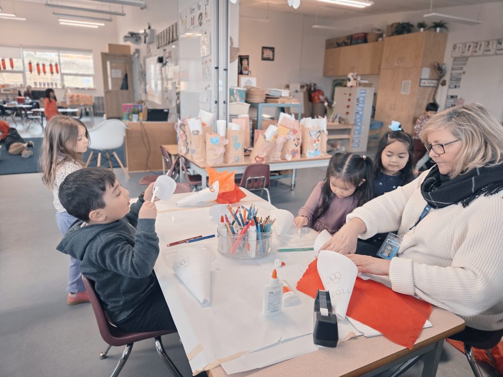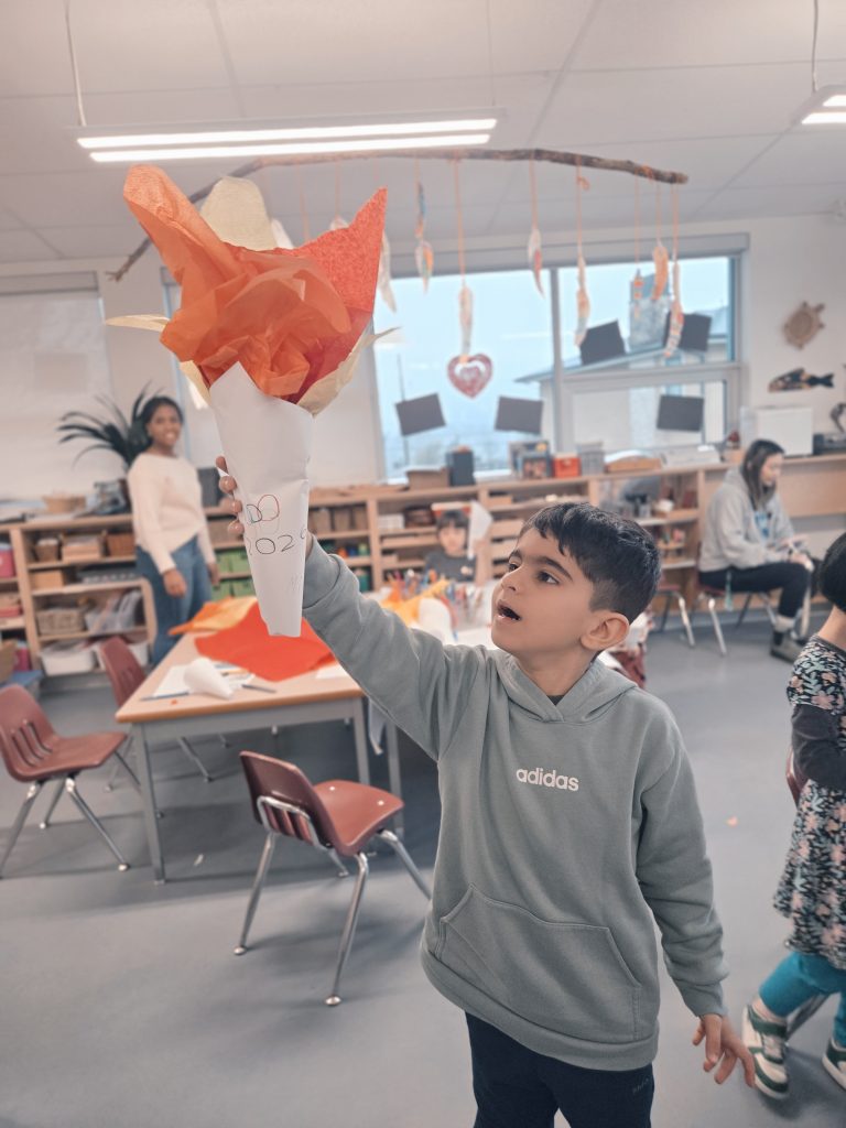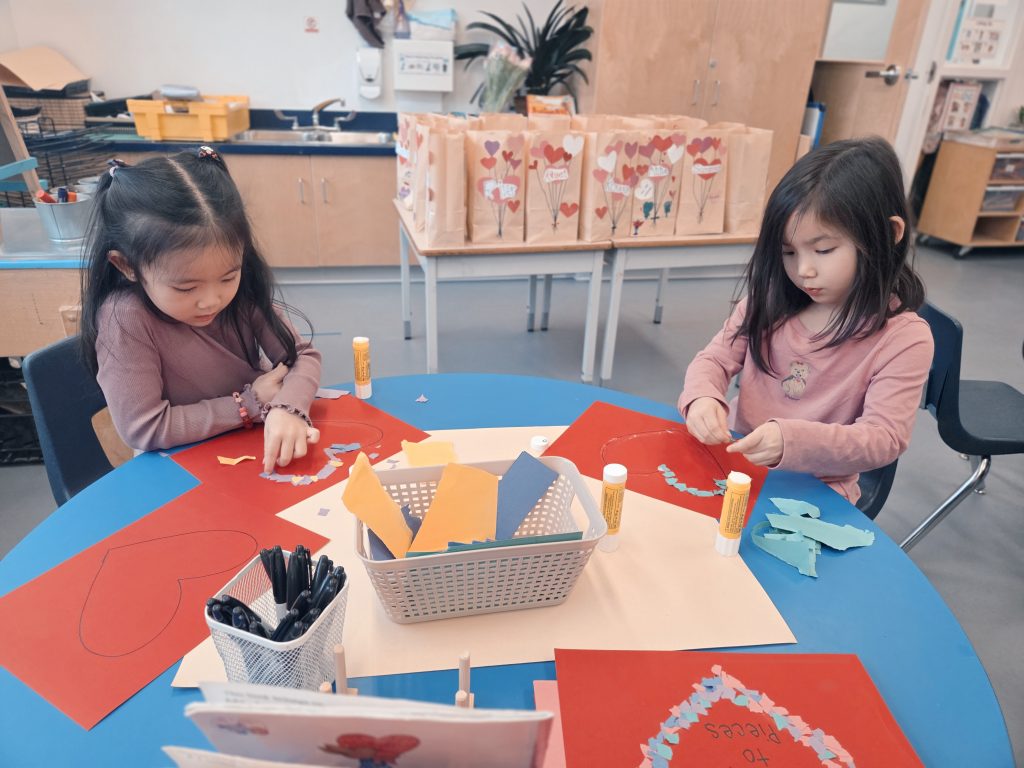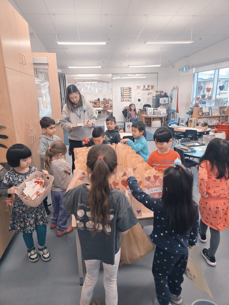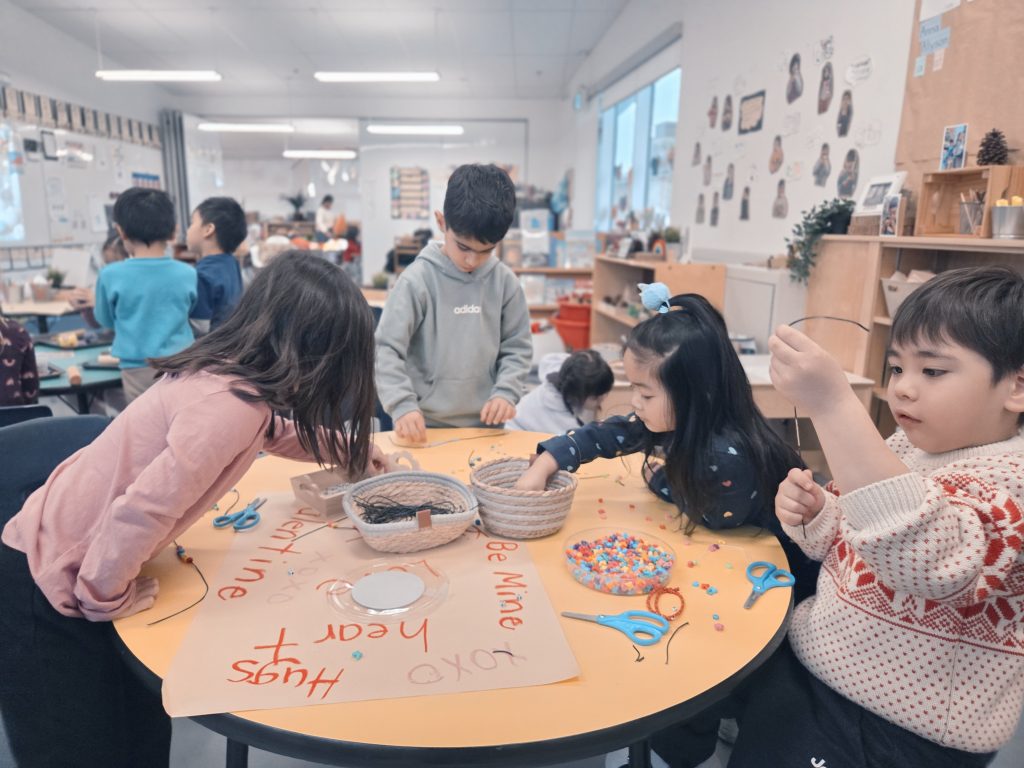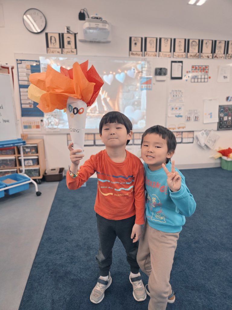 We celebrated Valentine’s Day, Lunar New Year, 100th Day, and learned about Anti-Bullying (Pink Shirt Day) and Black History Month. Please see our beautiful Valentine’s Day bags – we filled these with cards and messages for our friends. We made bracelets with special words and experimented with a variety of materials in Art. We also learned and talked about the Olympics in Italy!