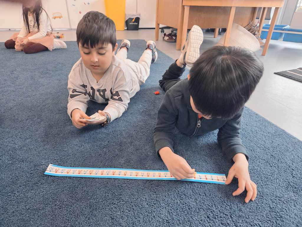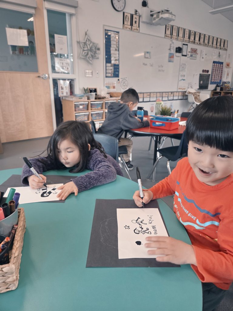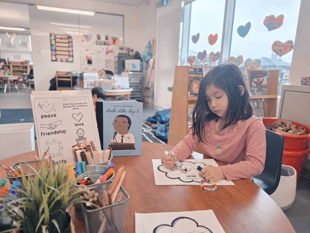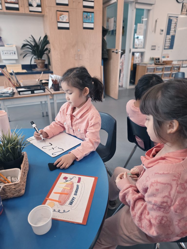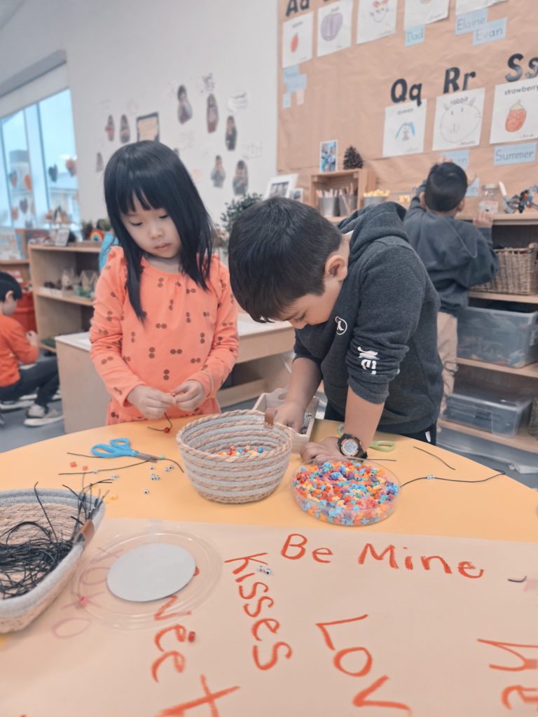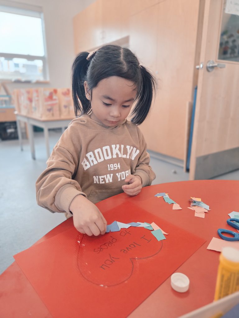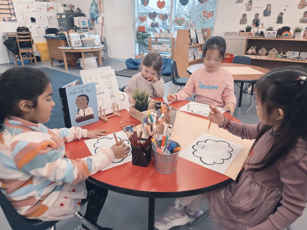 We celebrated Valentine’s Day, Lunar New Year, 100th Day, and learned about Anti-Bullying (Pink Shirt Day) and Black History Month. Please see our beautiful Valentine’s Day bags – we filled these with cards and messages for our friends. We made bracelets with special words and experimented with a variety of materials in Art. We also learned and talked about the Olympics in Italy!