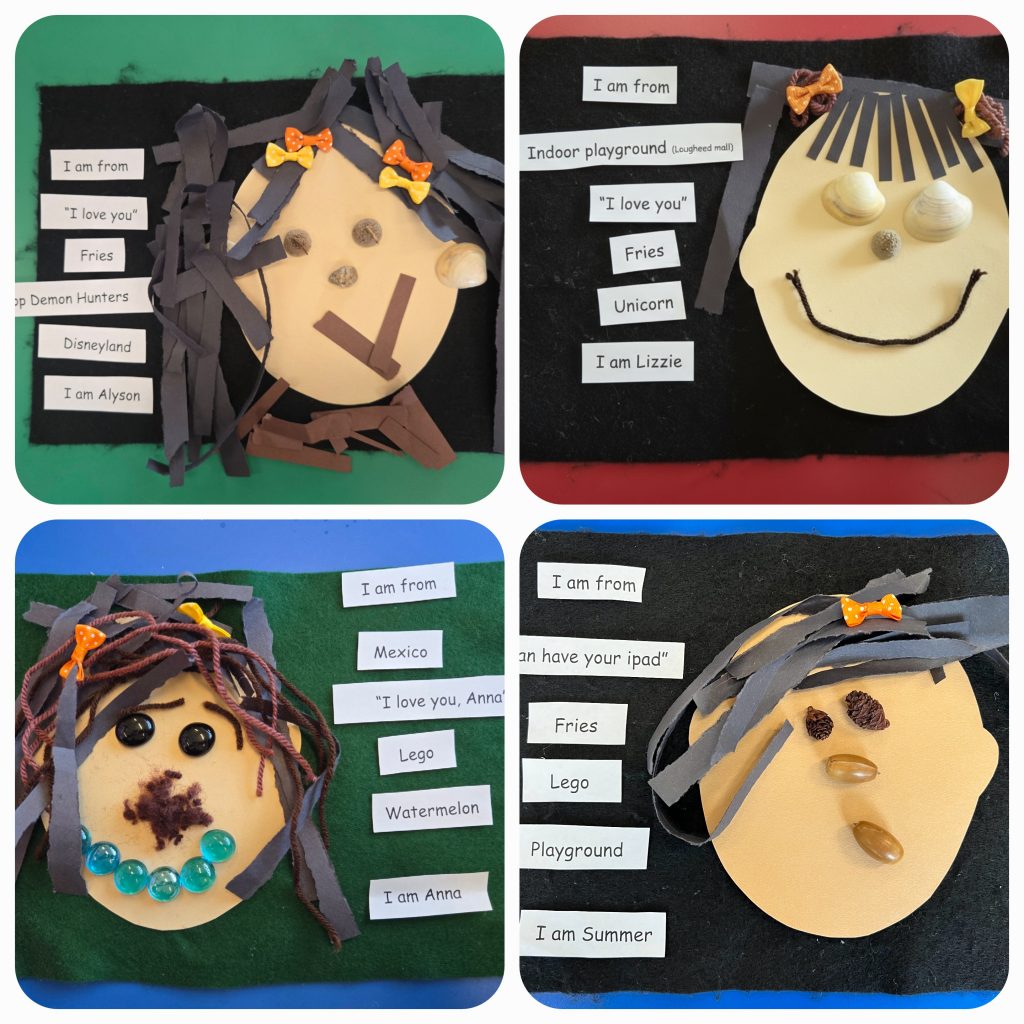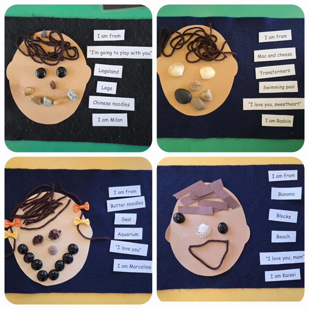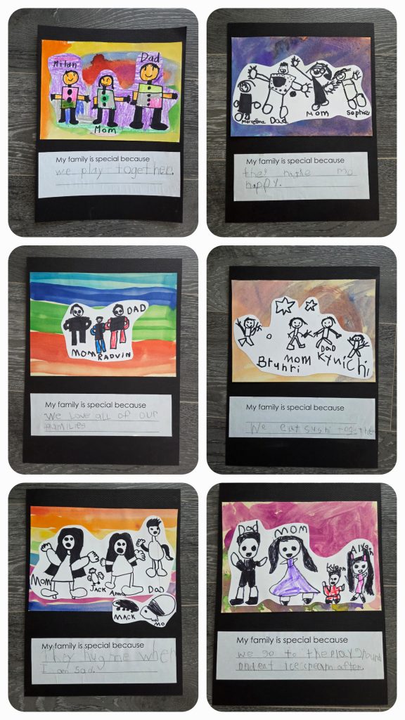 We learned about ourselves and shared information about our families with our classmates. Our “I Am From” poems are simple, personal reflections that foster self-identity and creative expression. We love that they are original and list favourites or feelings about ourselves. At the Pink Shirt Day assembly, some of us read out our poems about why our families are special.