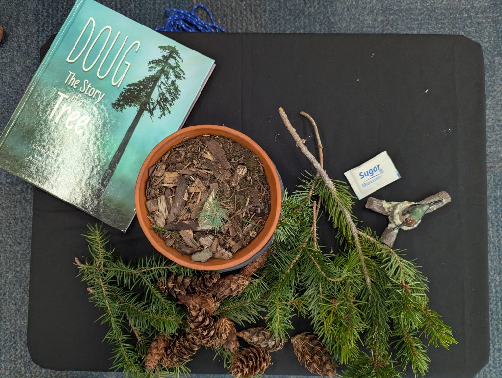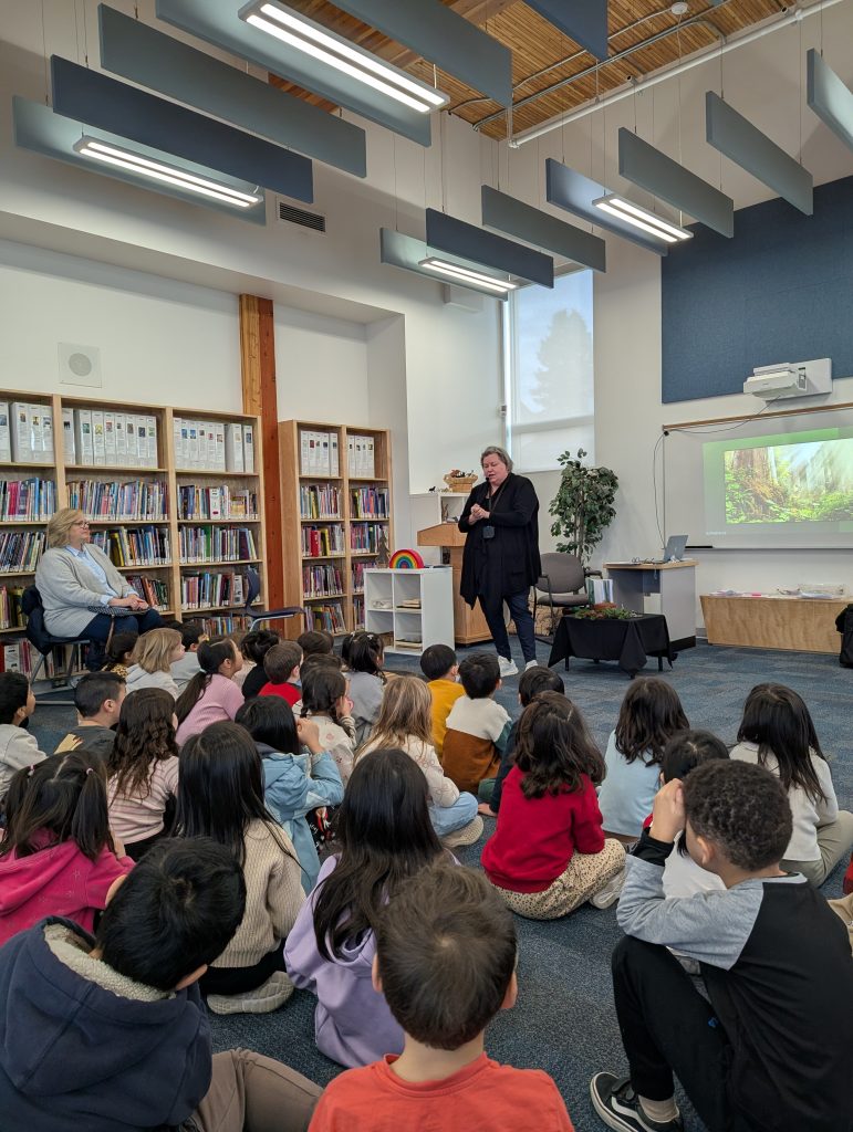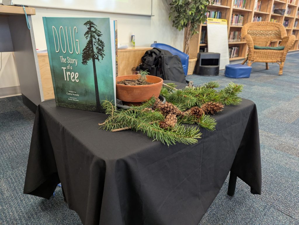 At the end of January, our school had a special visit from local British Columbia author and educator, Cathy Hussey. She brought her passion for storytelling and the natural world directly to our readers. Cathy’s work often reflects her deep connection to the Pacific Northwest and her background in working with young learners. Her book, Doug: The Story of a Tree, is a heartwarming tale designed for children (ages 6–8) that explores themes of growth, resilience, and the interconnectedness of nature.