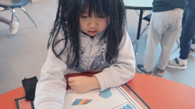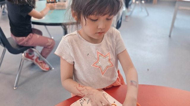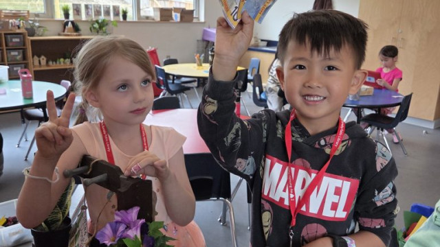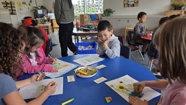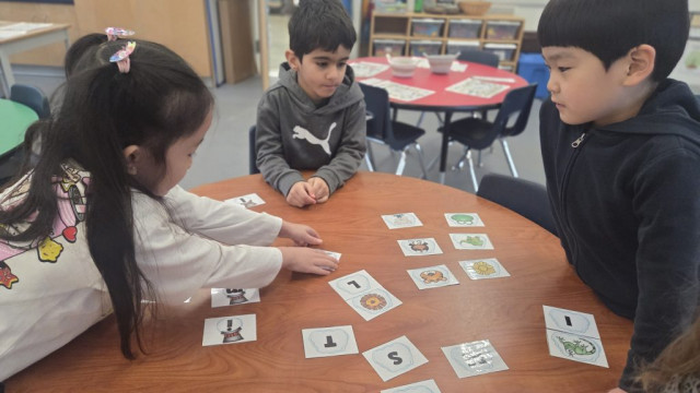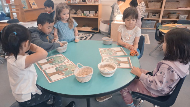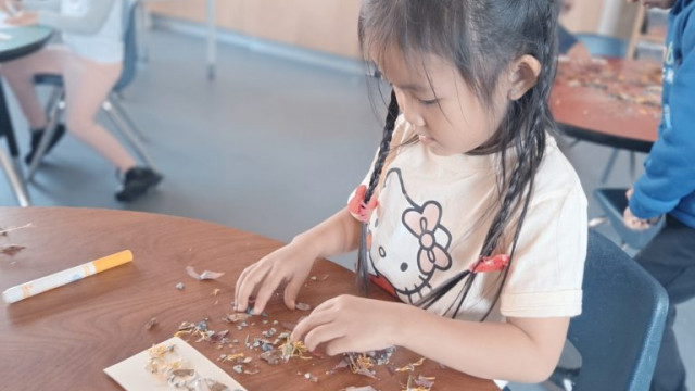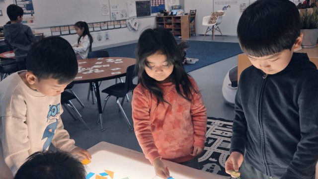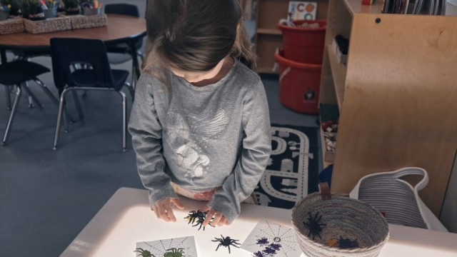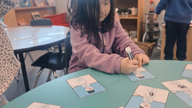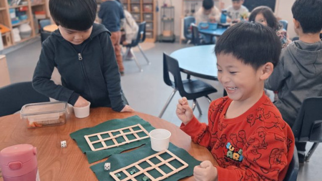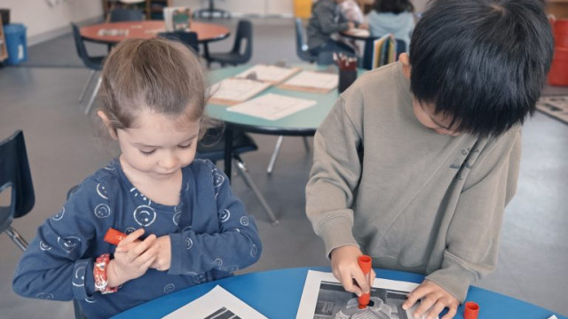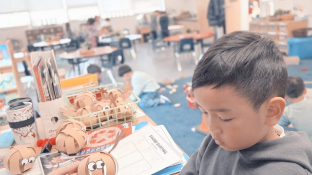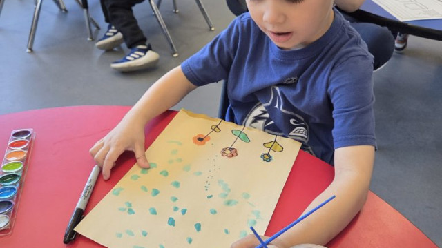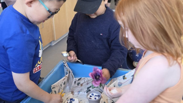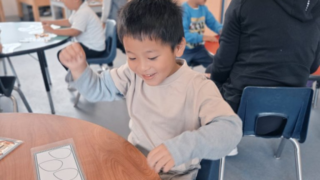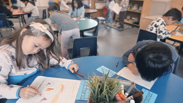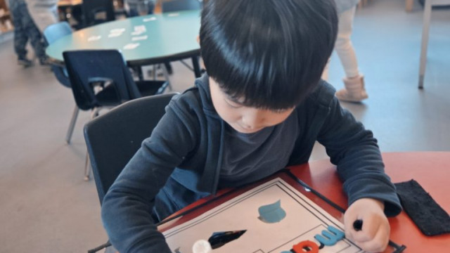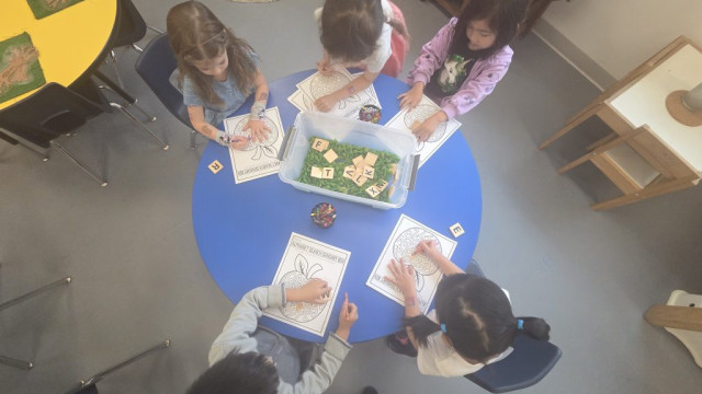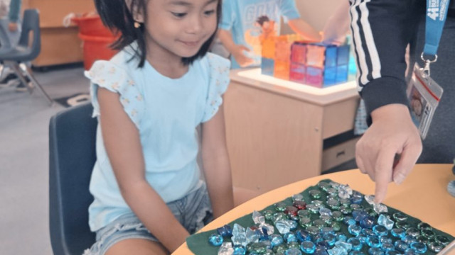 Division 12 learning and exploring hands-on activities in literacy, math, and art.
