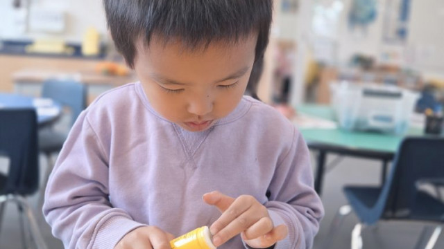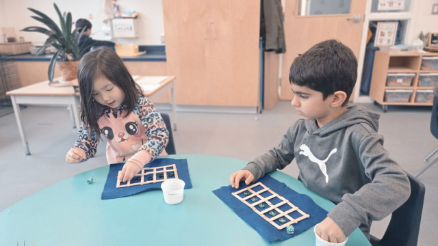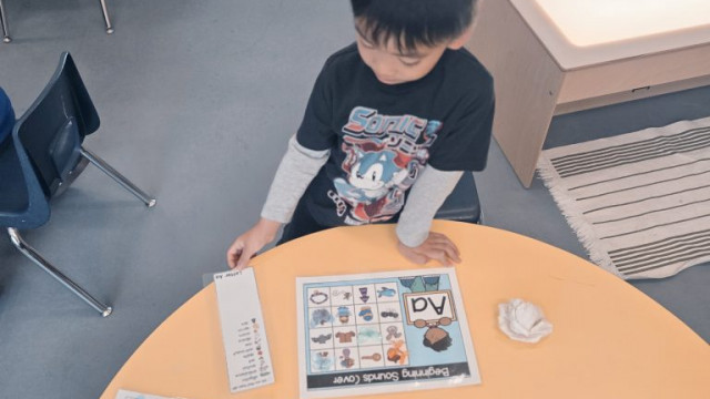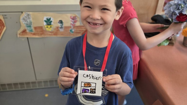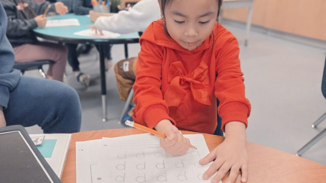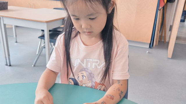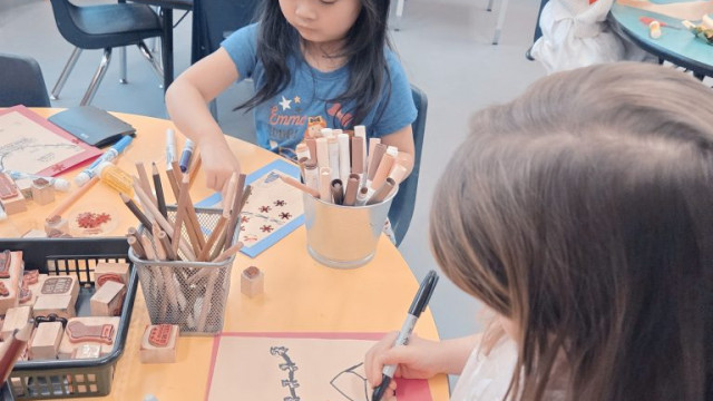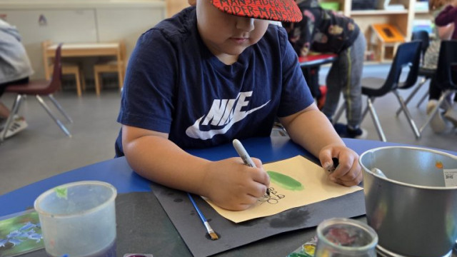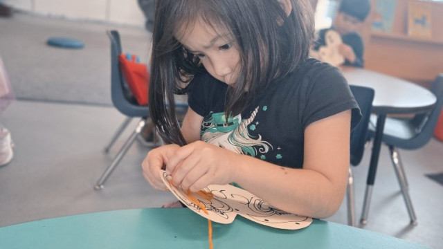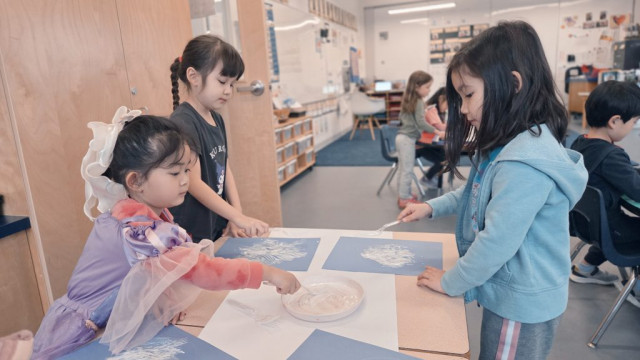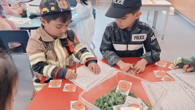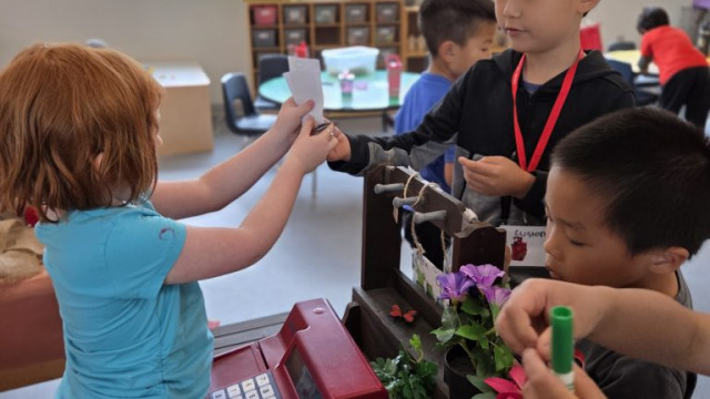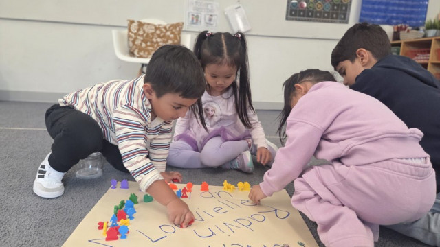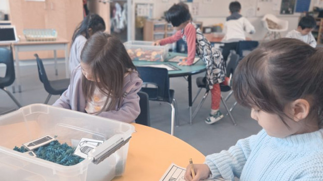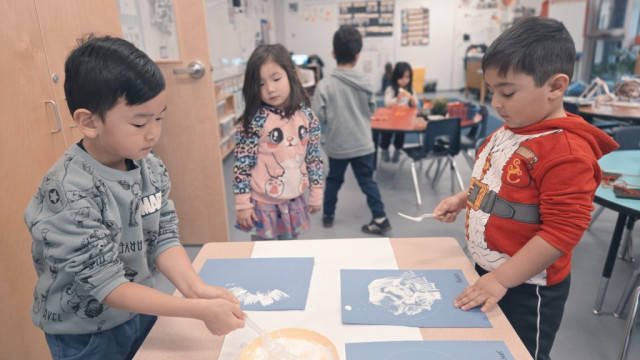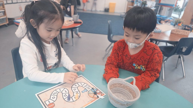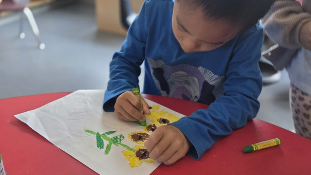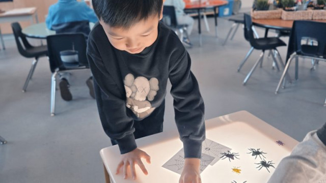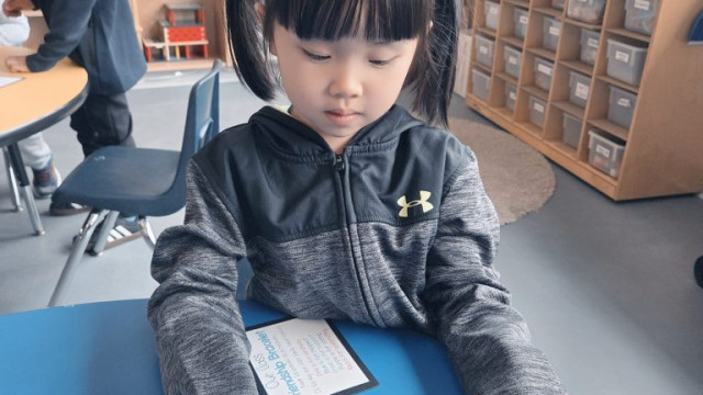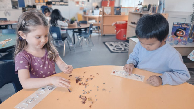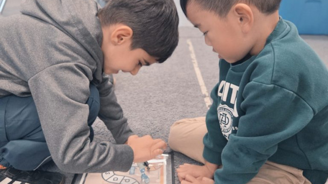 Division 12 learning and exploring hands-on activities in literacy, math, and art.
