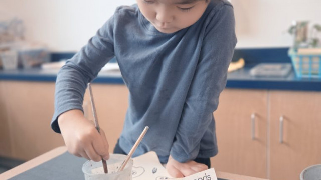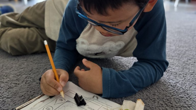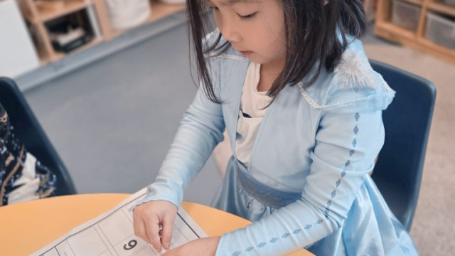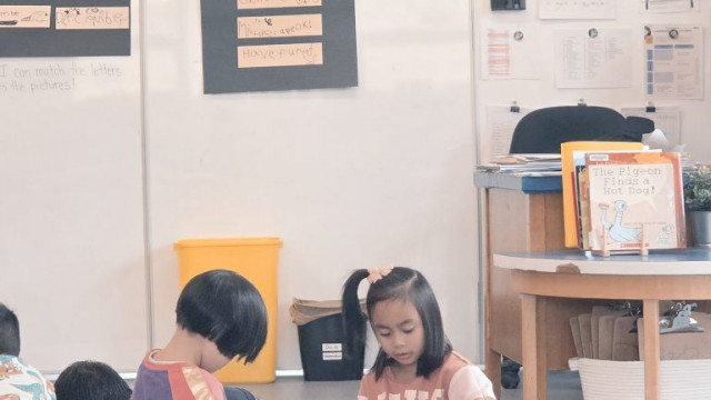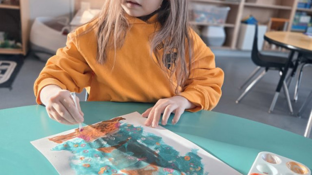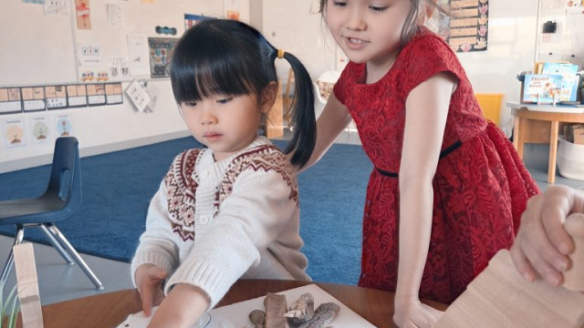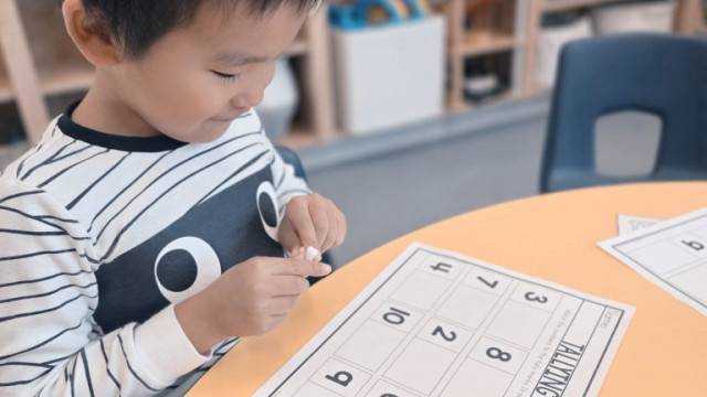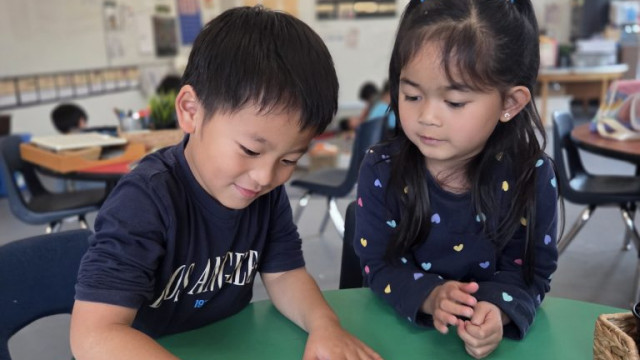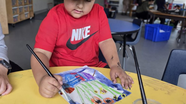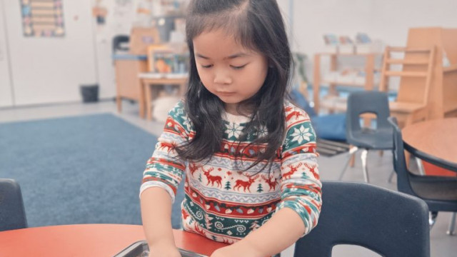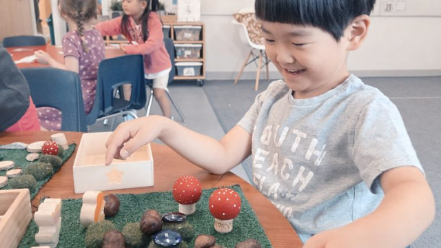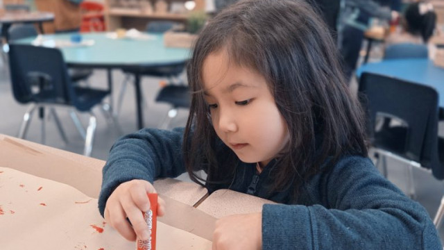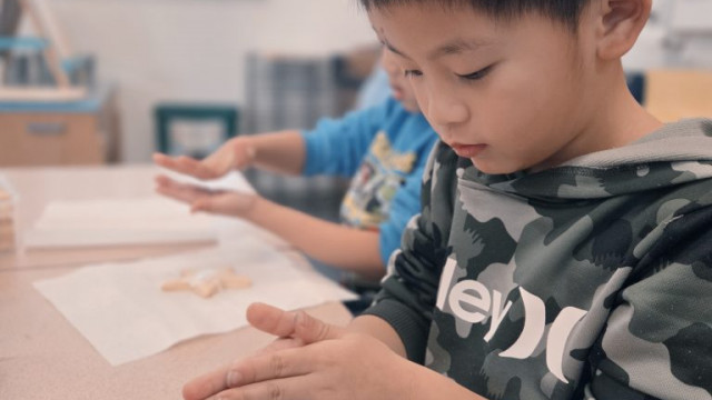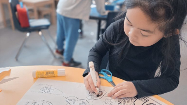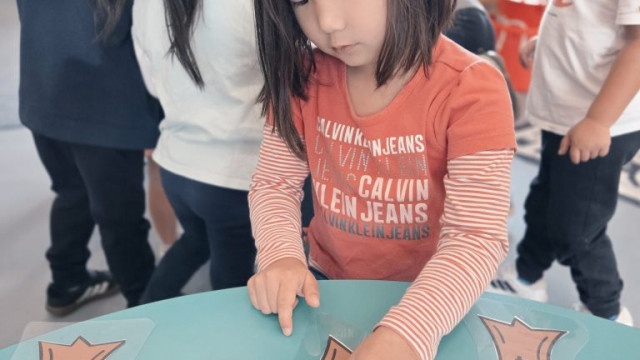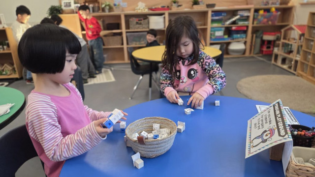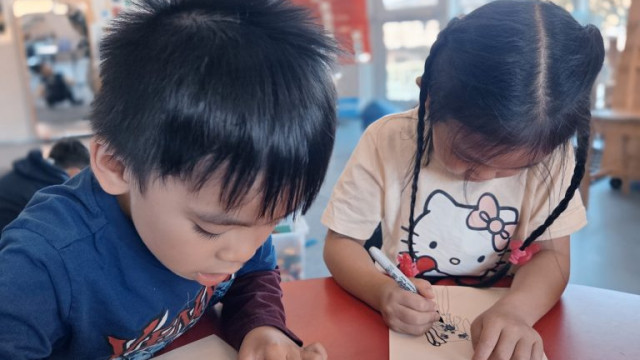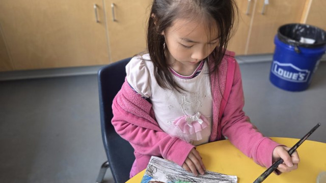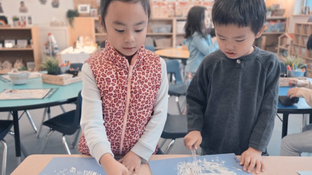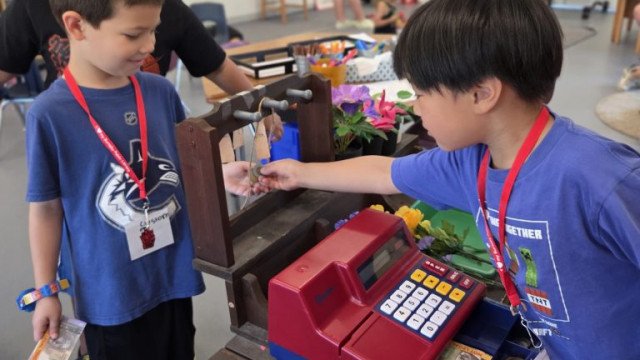 Division 12 learning and exploring hands-on activities in literacy, math, and art.