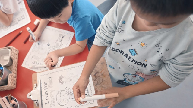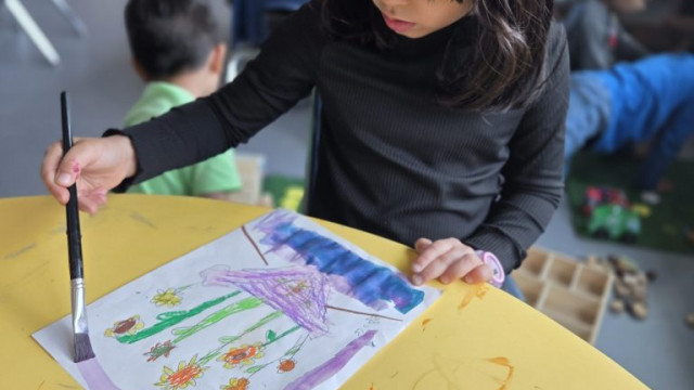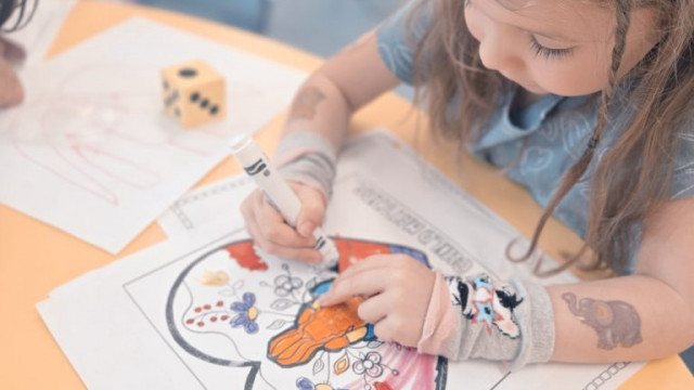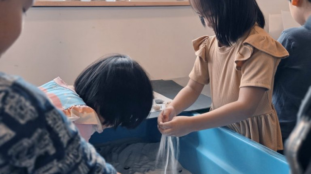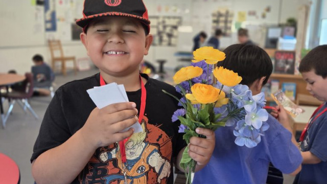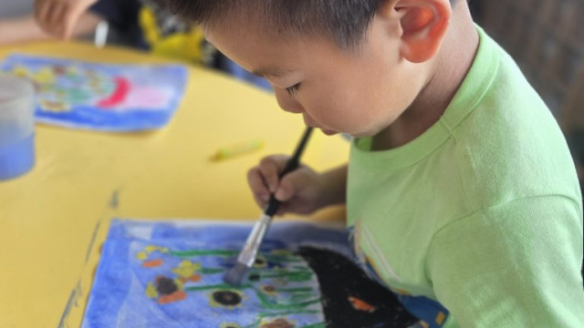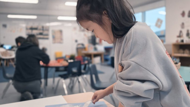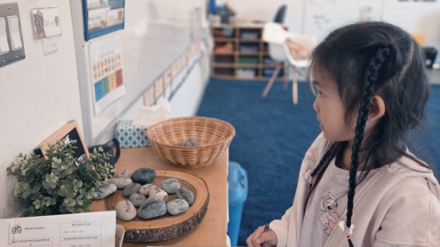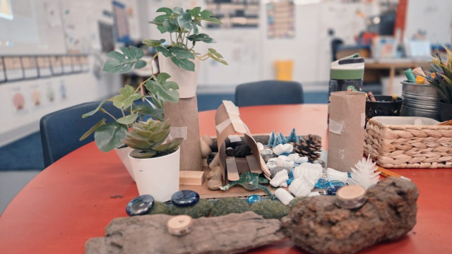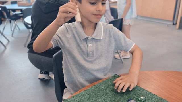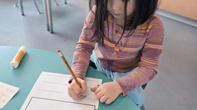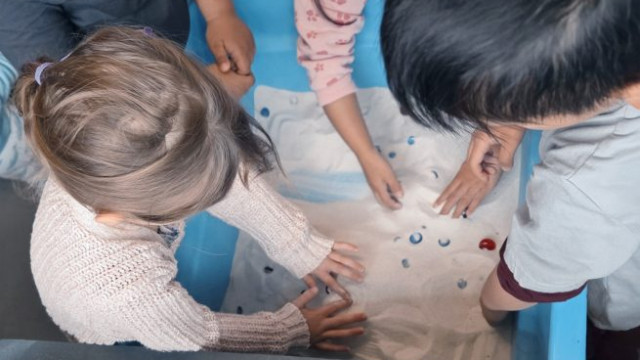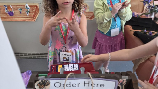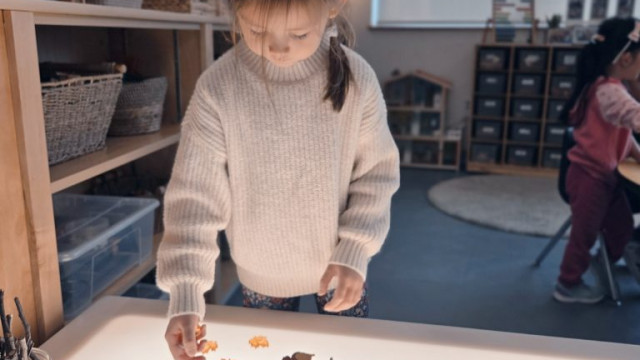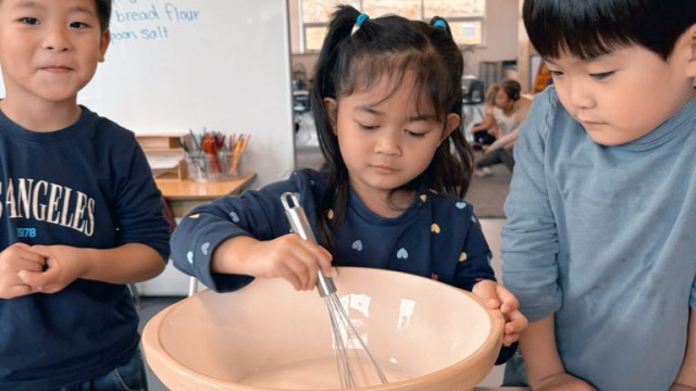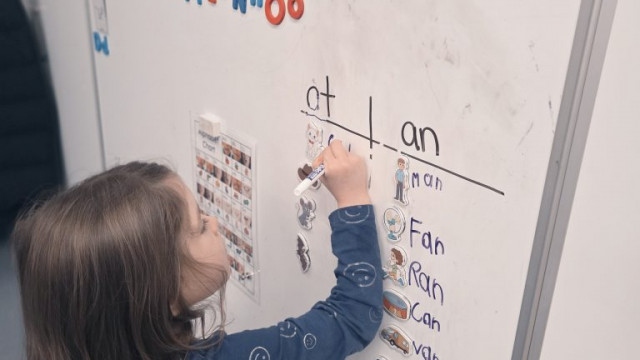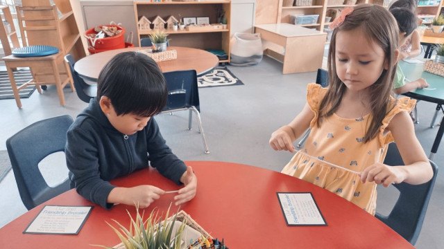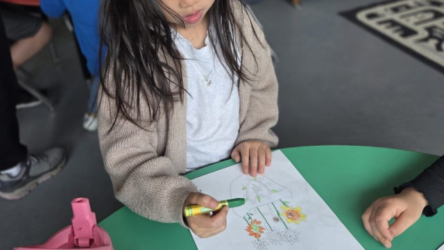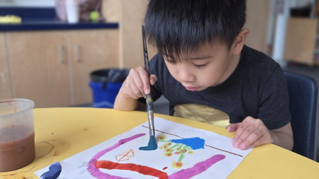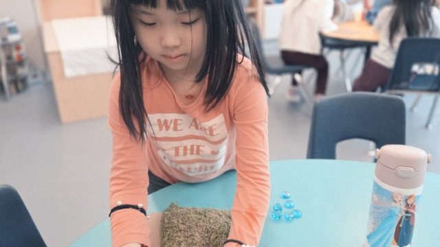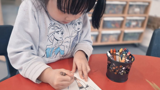 Division 12 learning and exploring hands-on activities in literacy, math, and art.
