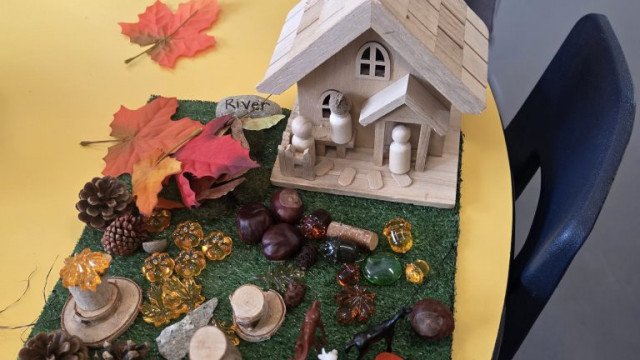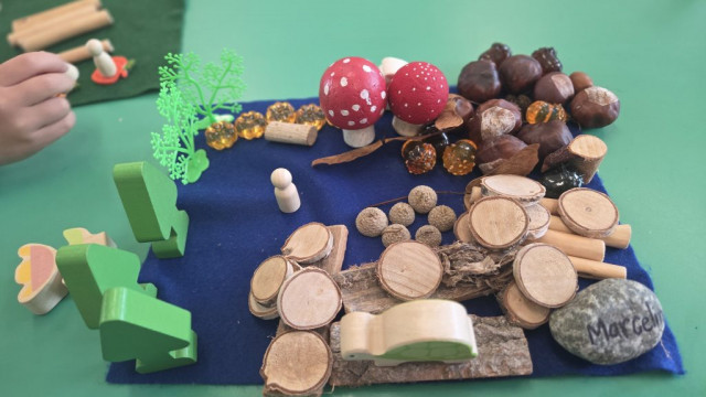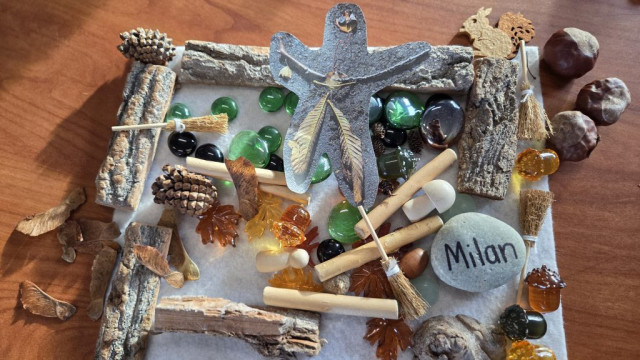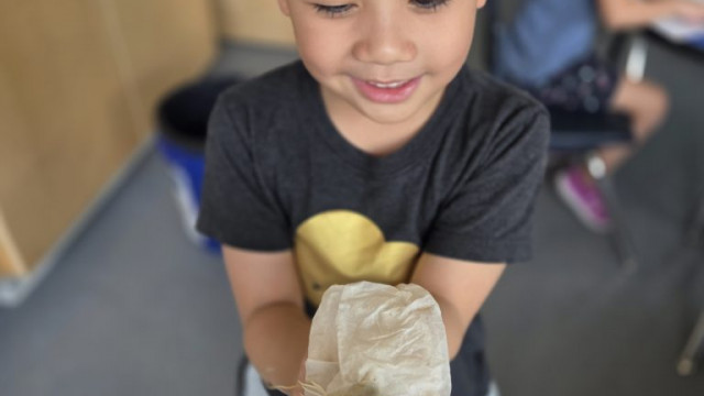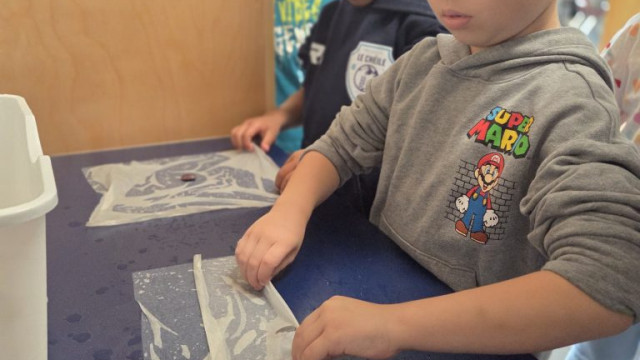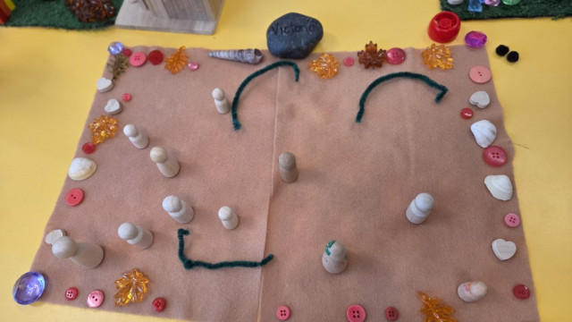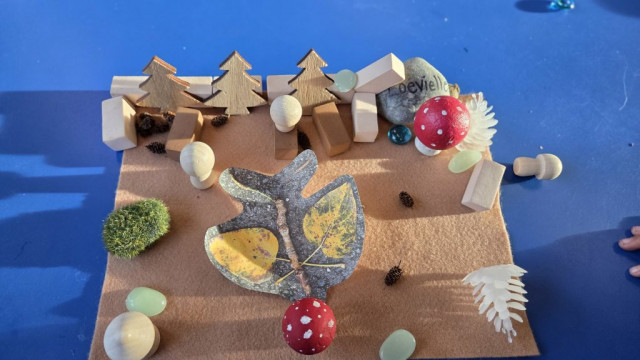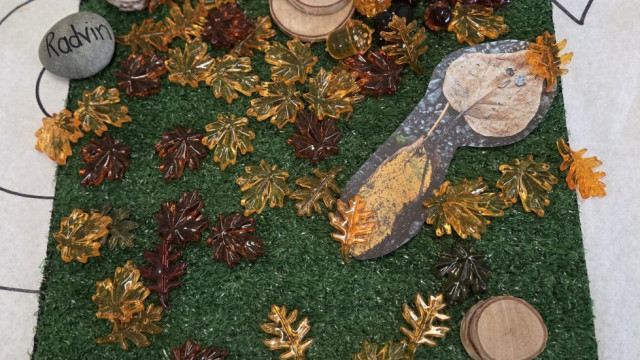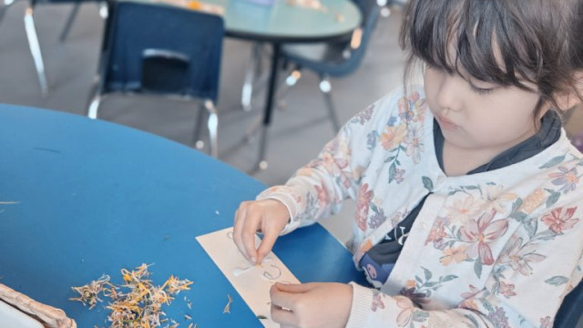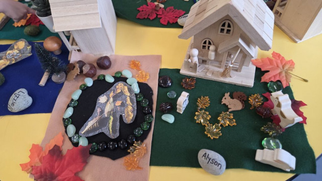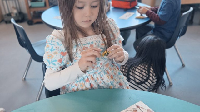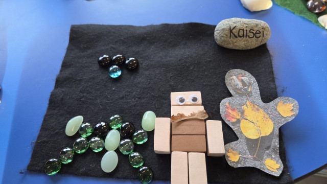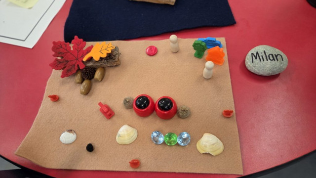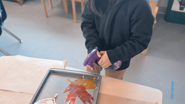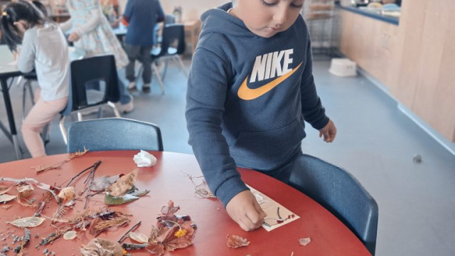 Inspired by Lois Ehlert’s book Leaf Man, we collected leaves and used them to imagine their own characters and adventures. Some created leaf animals, while others created magical journeys for their Leaf Man. Afterwards, we wrote about our leaf creatures and the places they traveled. Ask your child to share their story with you—it’s a wonderful way to celebrate their creativity!