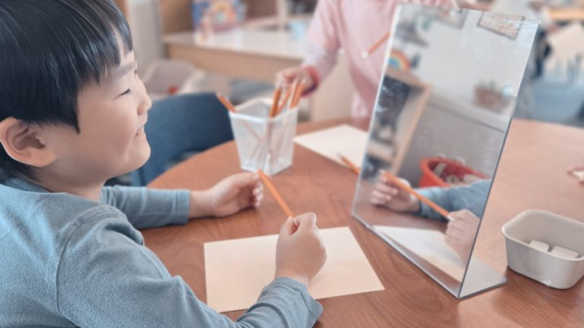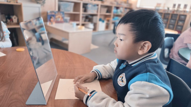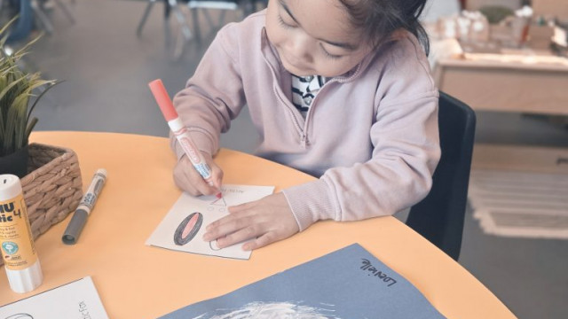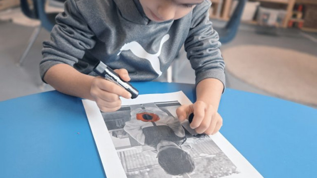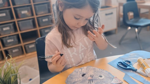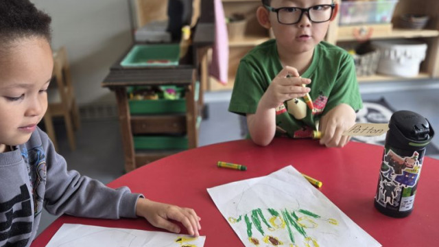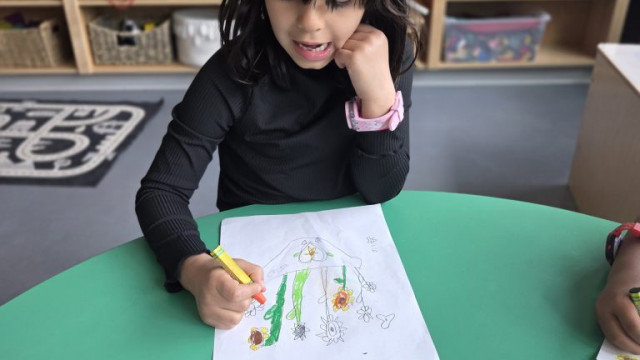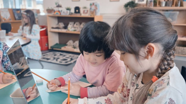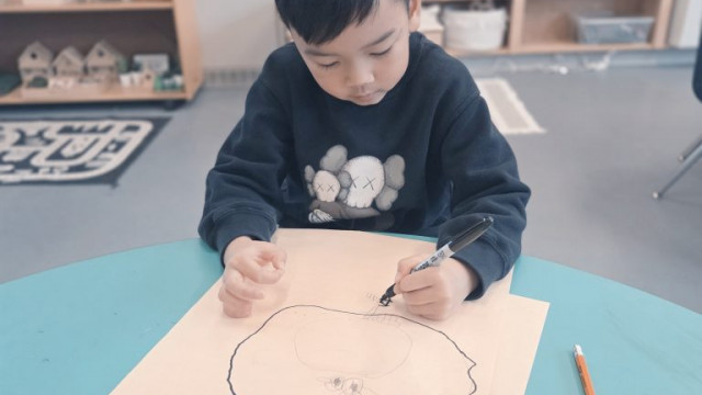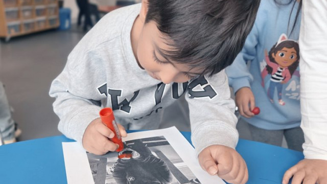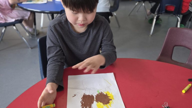 Our young artists explored self-expression! They looked closely at their reflections in mirrors to draw detailed self-portraits, noticing the unique shapes and features that make them special.