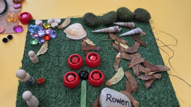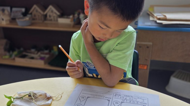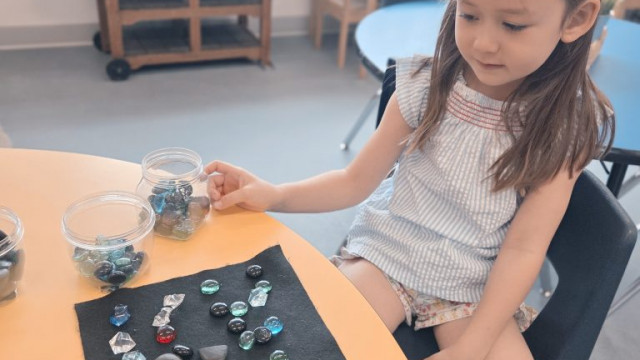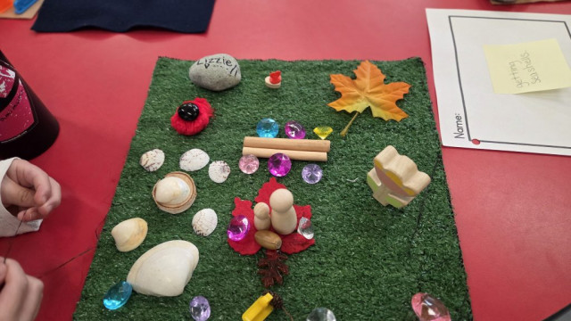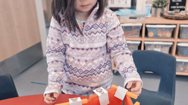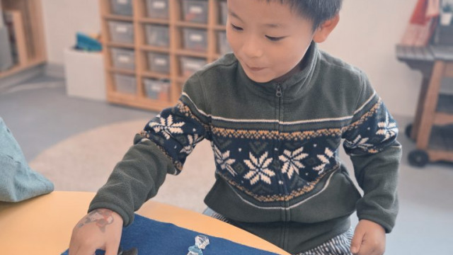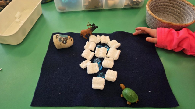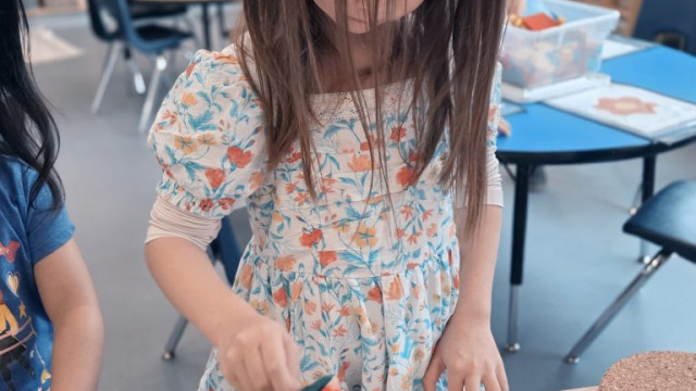 During literacy exploration, we continued learning letter names and their corresponding sounds. We are practicing letter formation and have recently begun building CVC (consonant-vowel-consonant) words. In math exploration, we are showing our learning by using loose parts to create and extend patterns.