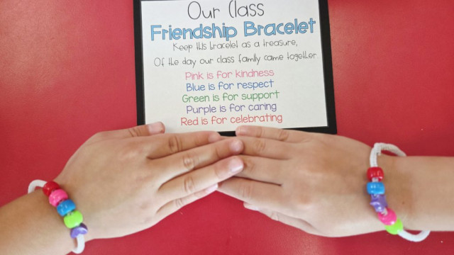We read the book One Word for Kids, which inspired us to think about a word that will help us be our best selves this year. We brainstormed words like kind, strong, fast, love, smile, sing, family. Each child chose a word that was meaningful to them, wrote it down, and created a bracelet to wear as a reminder.