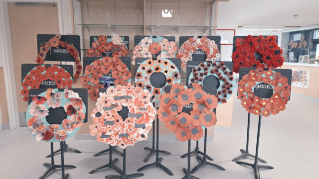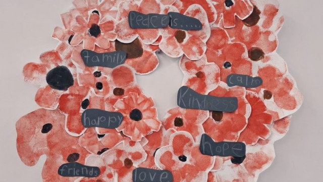Our class talked about the importance of Remembrance Day. It is a day to honour soldiers, veterans and families who have sacrificed their lives for our freedom. Each class made a wreath for the wreath laying ceremony. Div. 12 and 13 read a poem called “Little Poppy” at the assembly.