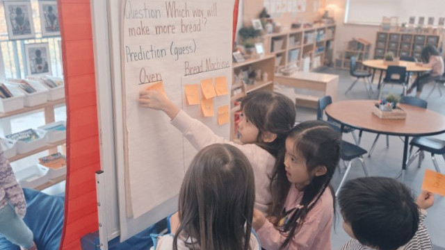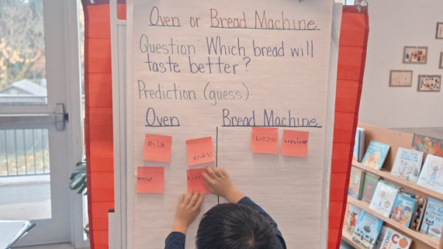 Before baking, we made predictions: Which way will make more bread? Which would taste better—the one baked in the oven or the one made in the bread machine?